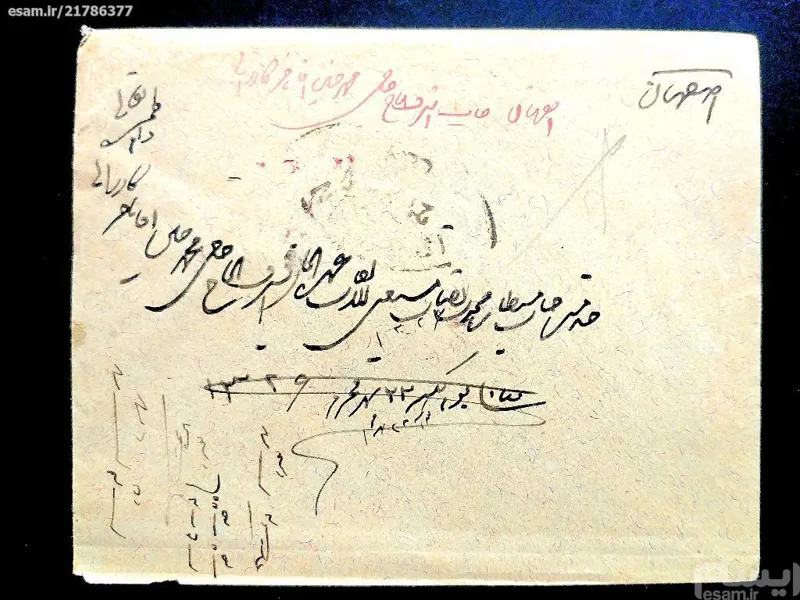 پاکت ارزشمند مظفری با مهرهای زیبا و کمیاب شخصی
