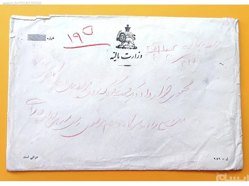 پاکت ارزشمند قاجاری وزارت مالیه باتصویر شیر خورشید