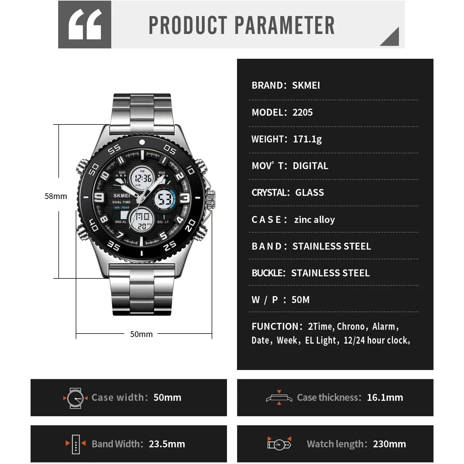 ساعت اسکمی مردانه دوزمانه skmei 2205 sl