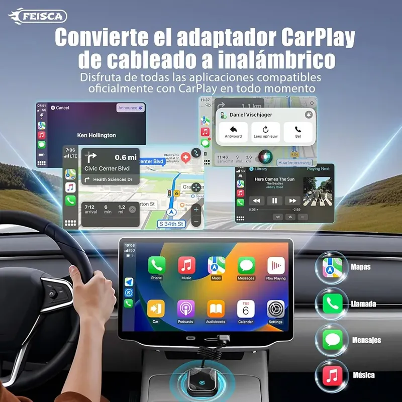 بیسیم پخش خودرو برای آیفون میتواند از ناوبری، تماس ها، موسیقی، پیام ها و همچنین همه برنامه های پشتیبانی شده از پخش خودرو در حین رانندگی استفاده کند.