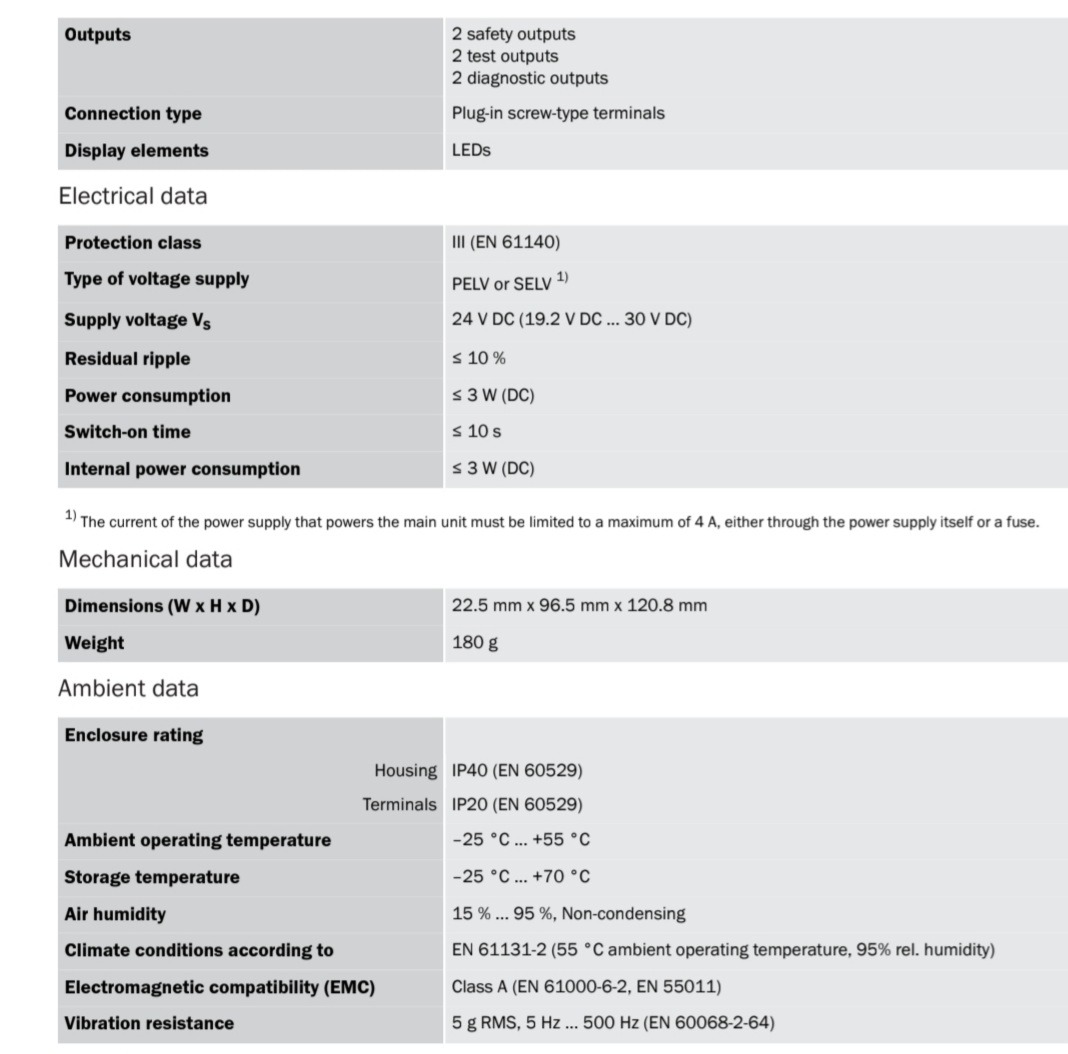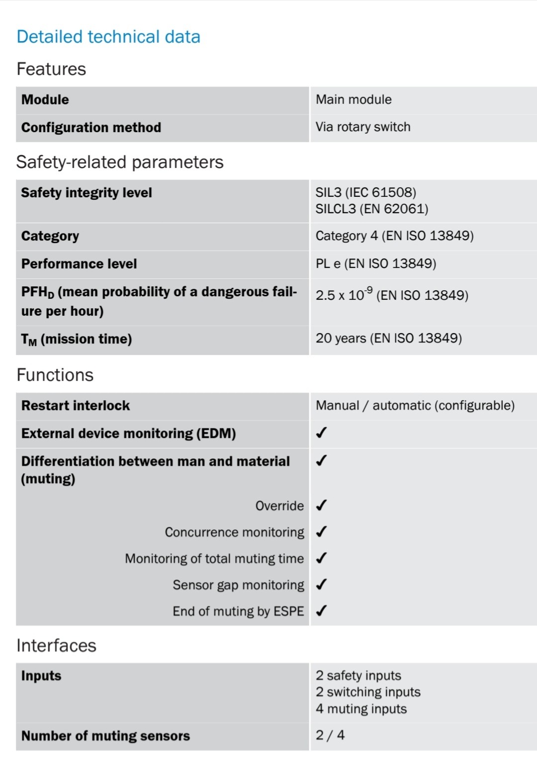 رده 4 (EN ISO 13849)، SIL3 (IEC 61508)، SILCL3 (IEC 62061)، PL e (EN ISO 13849)