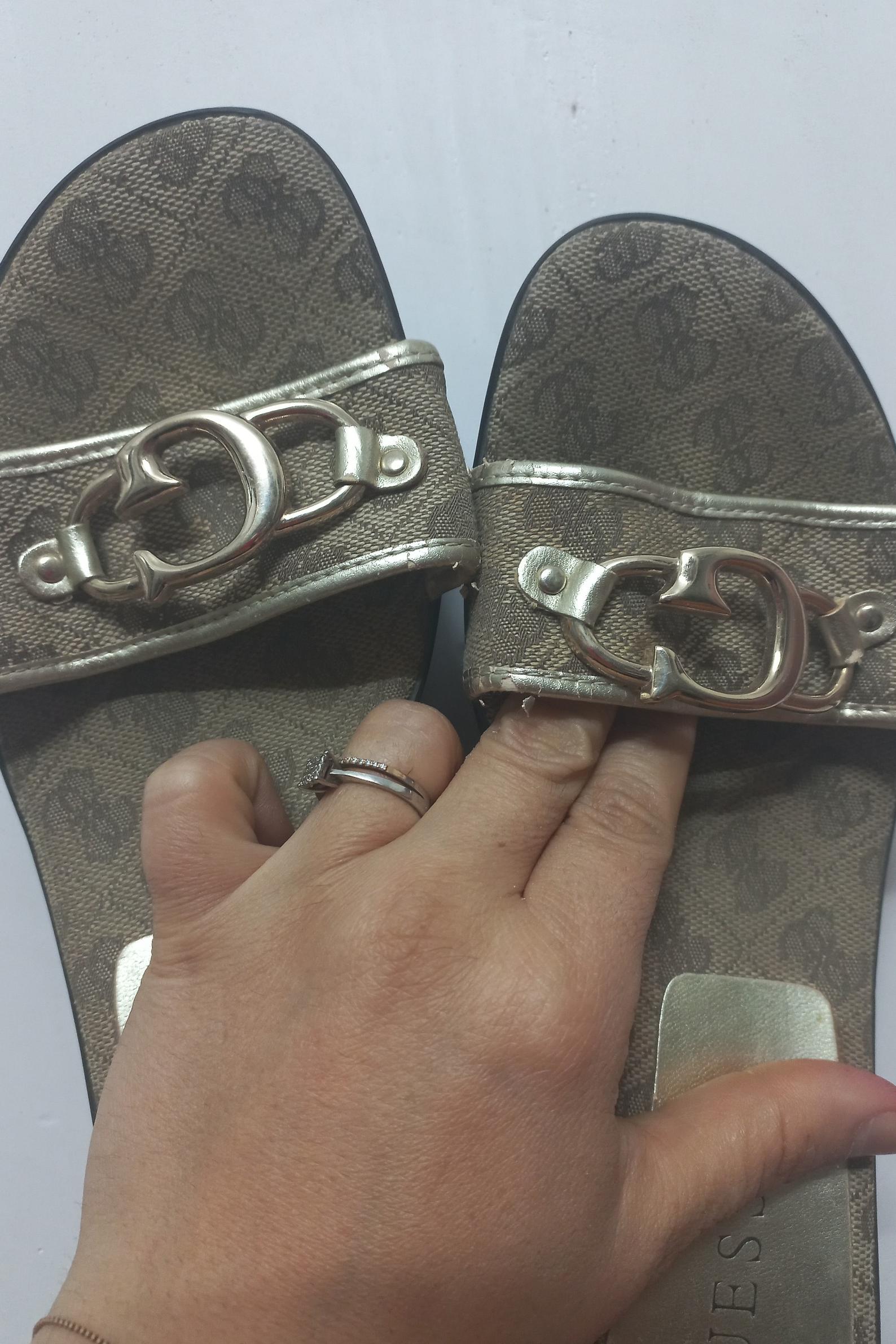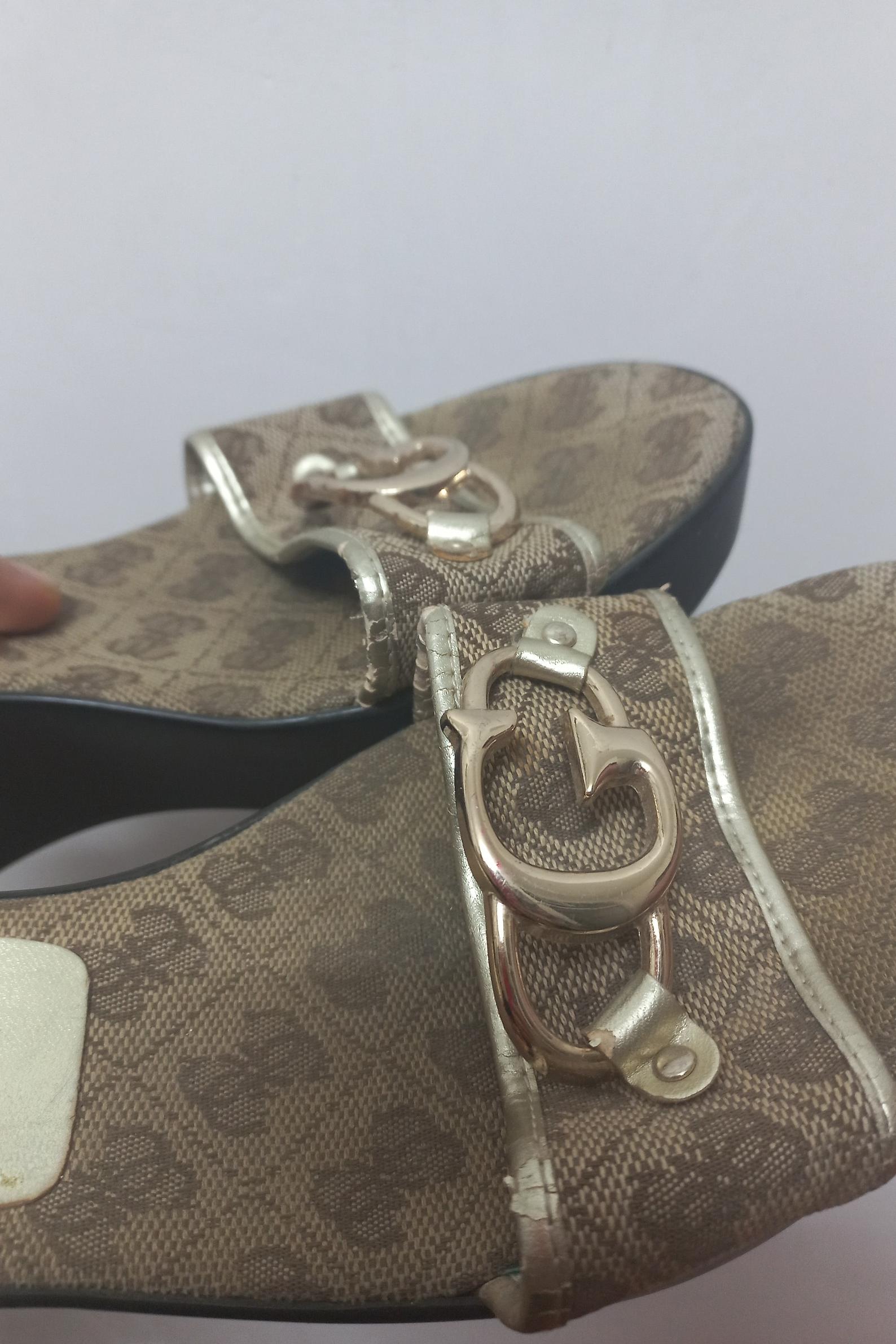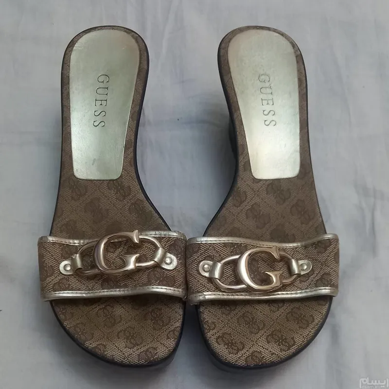 کفش صندل Guess سایز 38 لبه طلایی کمی پوسته شده