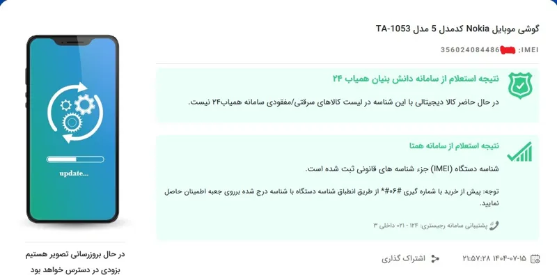 مطابق تصاویر یک عدد مین برد نوکیا 5 مدل TA-1053