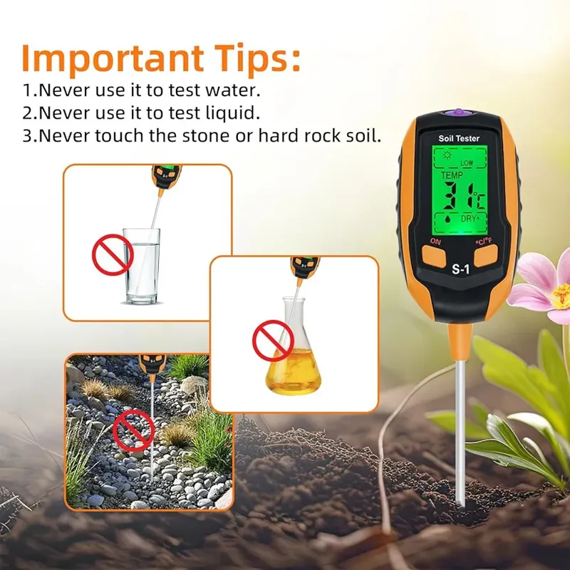 دستگاه خاک سنج 4 کاره: این دستگاه چندکاره pH خاک، pH، رطوبت، دما و شدت نور خاک را به طور دقیق اندازه گیری میکند و ابزاری ایدهآل برای اندازهگیری pH خاک برای گیاهان خانگی، باغ، چمن و مزرعه است.