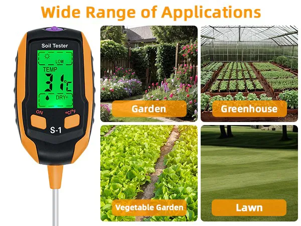 کاربرد گسترده: مناسب برای داخل و خارج از منزل. این دستگاه خاک سنج میتواند برای باغ، مزرعه، گیاهان گلدانی، ساکولنتها و غیره شما استفاده شود. برای کمک به باغ یا چمن شما در بهترین شرایط!