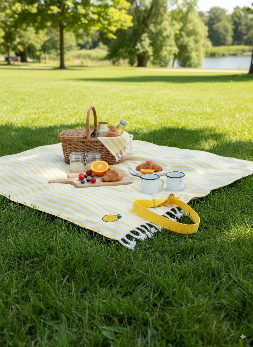 لحظات دلانگیز در طبیعت، پارک و ساحل با یک زیرانداز مناسب کامل میشوند. زیرانداز پیکنیک ما با طرح راهراه زرد و سفید و گلدوزی جذاب لیمو، انتخابی بینظیر برای لذت بردن از فضای باز است. این محصول با طراحی شاد و کاربردی خود، زیبایی و راحتی را در هر پیکنیک، دورهمی دوستانه یا عصرانهای در پارک به شما هدیه میدهد.