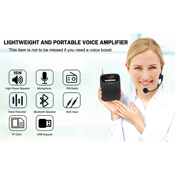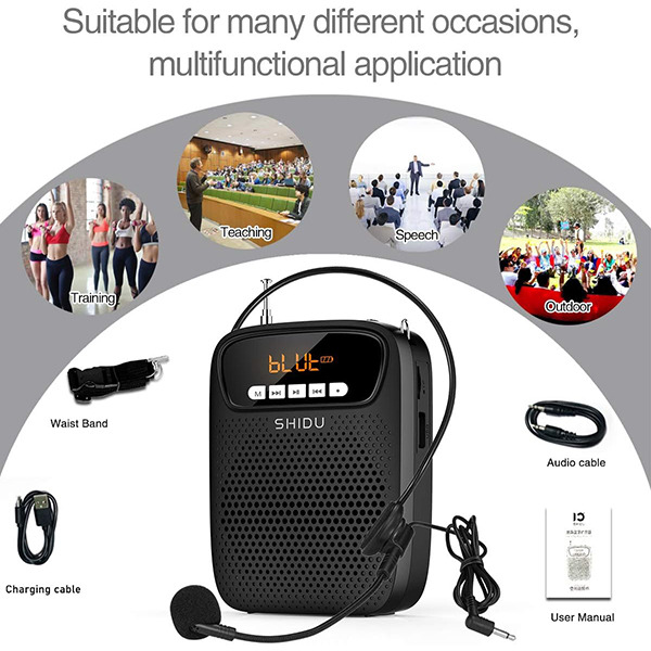 (صدای خود را به گوش دیگران برسانید): اجازه ندهید صدای آرام شما دیگر شما را عقب نگه دارد. میکروفون هدست S278 را معرفی می کنیم تقویت کننده صوتی کوچک و در عین حال قدرتمند قابل حمل که مطمئناً شما را از سایرین متمایز می کند. این میکروفون و اسپیکر سیمی با توان خروجی 15 وات می تواند به وضوح صدای شما را تقویت کرده و از تارهای صوتی شما محافظت کند و به شما این امکان را می دهد که به راحتی توسط گروه های 20 تا 65 نفره شنیده شوید.