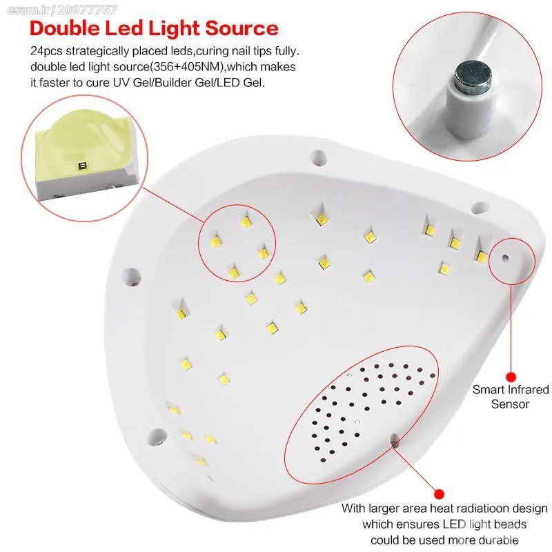 دستگاه UV وسیله ایست که امواج ماوراء بنفش (Ultraviolet) تولید میکند و در اکثر سالنهای مراقبت و زیبایی ناخن برای خشک کردن انواع لاک ژل ها و در تعمیرات الکترونیک و موبایل برای خشک کردن چسب و رنگ محافظ برد استفاده می گردد.این مدل جدید با لامپ LED ، با ظاهری شیک و فن آوری بالا ، امنیت بالا و صرفه جویی در انرژی لامپ بوسیله لامپ های LED و رنگ بندی متنوع و قابلیت تنظیم زمان برای راحتی بیشتر در هنگام انجام کار را دارا است . این دستگاه جایگزین مناسبی برای دستگاه های قدیمی میباشد