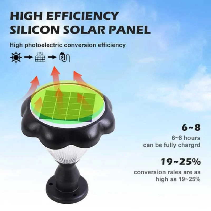چراغ سولار حیاطی و باغی با رنگ نور مهتابی طرحدار که بخاطر حالت بدنه و شیشه آن طرح زیبایی را در روی زمین روشن میکند. در قسمت بالایی محصول یک پنل خورشیدی قرار دارد که در طول روز نور خورشید را جذب نموده و از طریق آن باتری داخلی خود را شارژ می نماید. در هنگام شب سنسور حساس به تاریکی روشن شده و چراغ باغچه ای شروع به نورافشانی می کند.