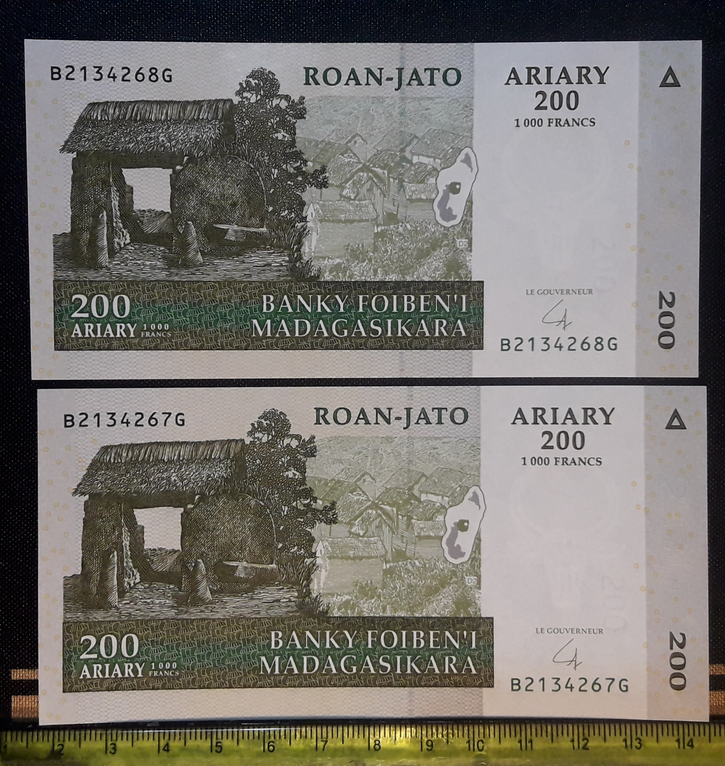 اسکناس کلکسیونی 200 اریاری ماداداسگار 2004 جفت