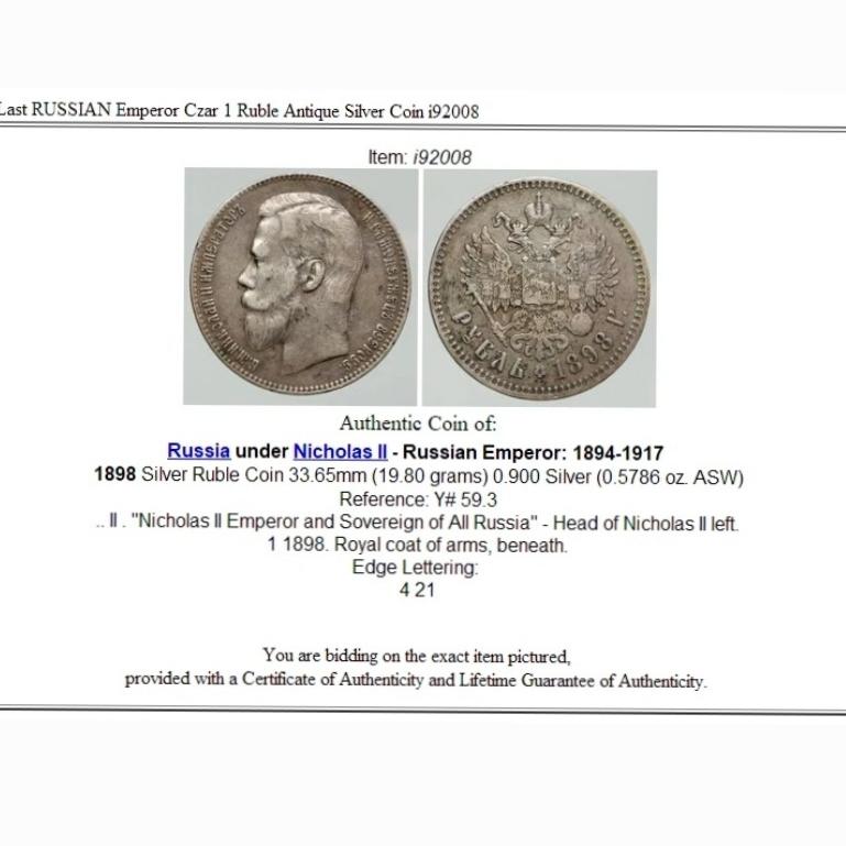 سکه نقره یک روبل روسیه تزاری