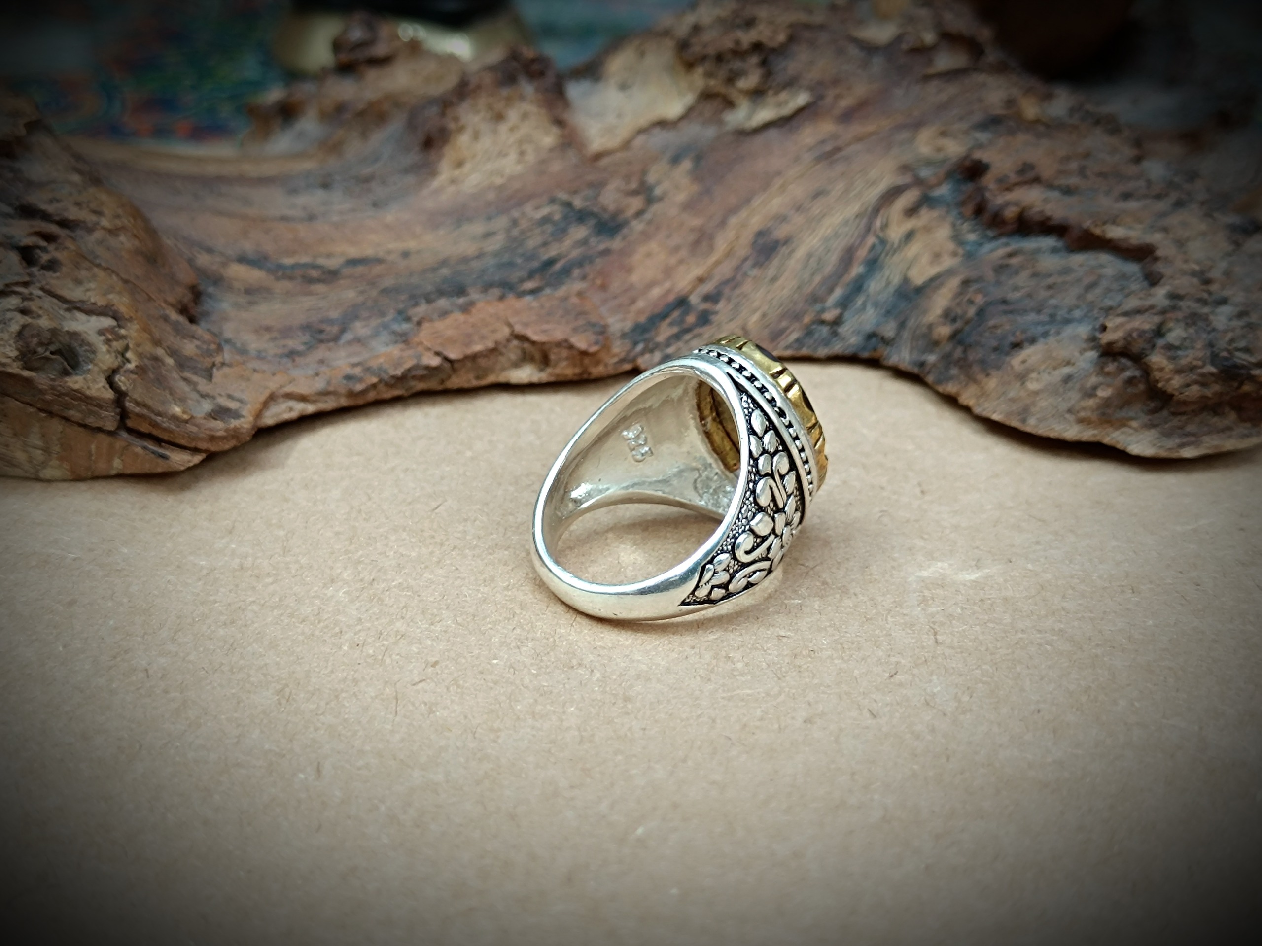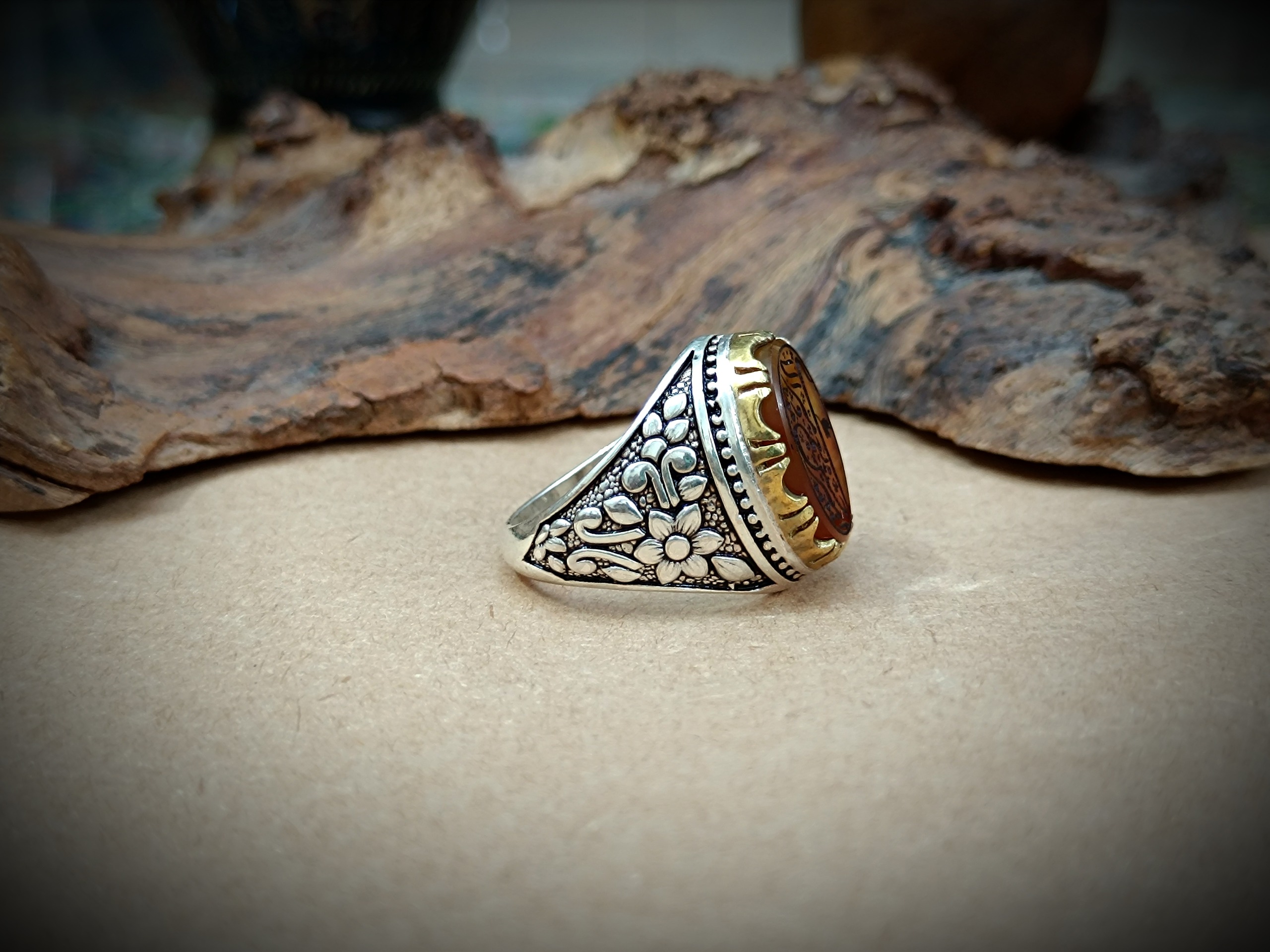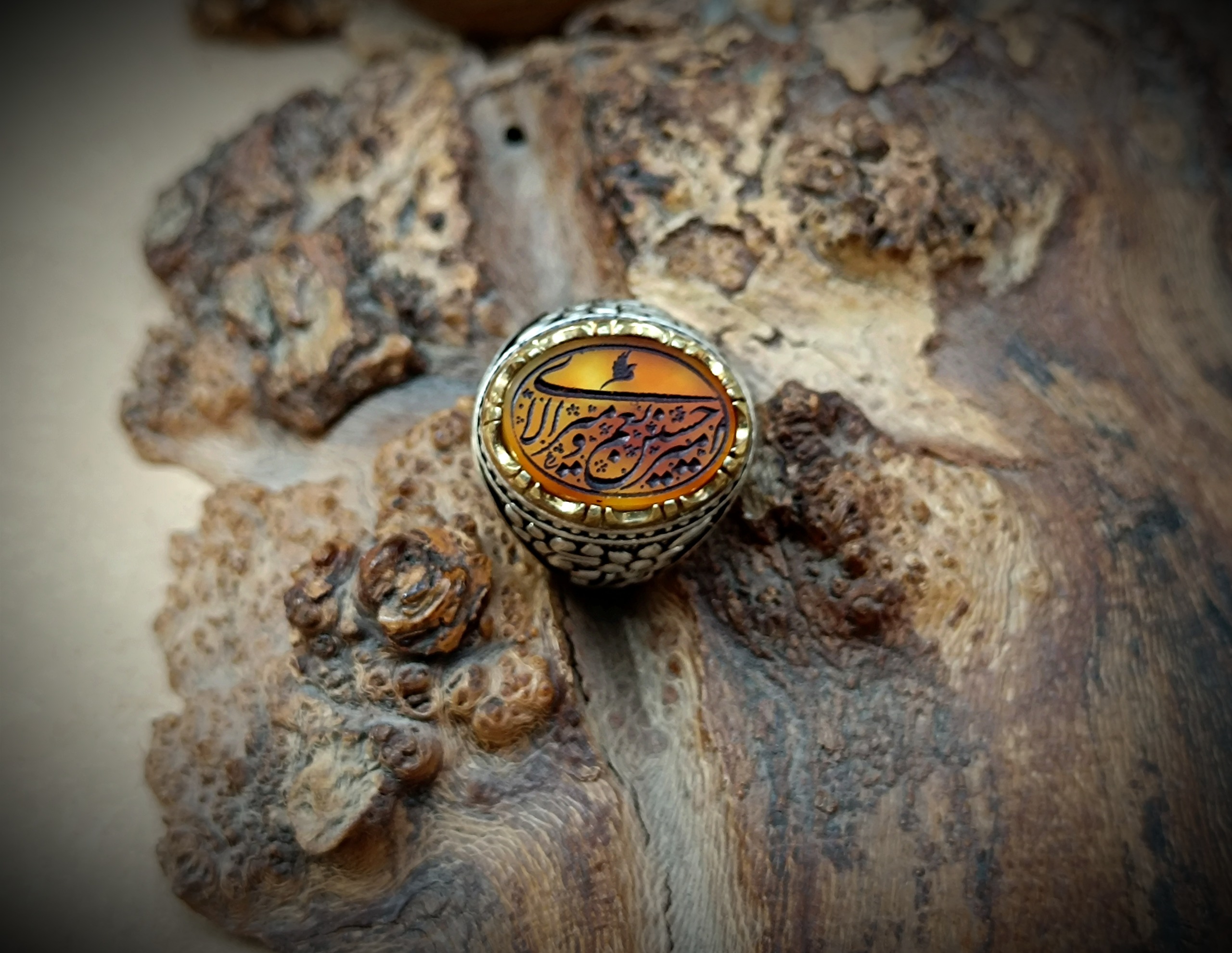انگشتر نقره مردانه با نگین عقیق خطی ذکر امیری حسین و نعم الامیر