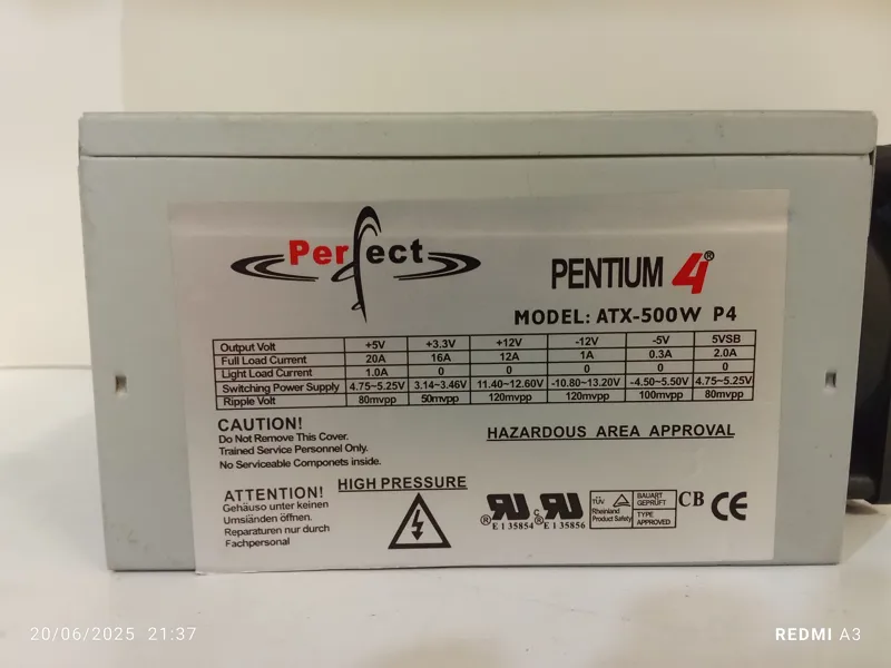 پاور 24 پین پرفکت مدلATX-500W P4-دارای دو فن