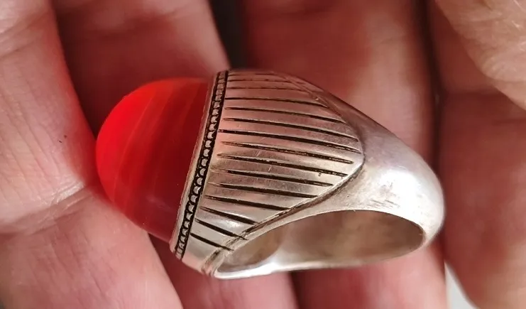 انگشتر قدیمی عقیق کلاهدار