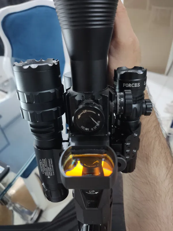 دوربین بوشنل 4×10 تاکتیکال با ریل پیکانی که روش رددات و لیزر سوار میشه