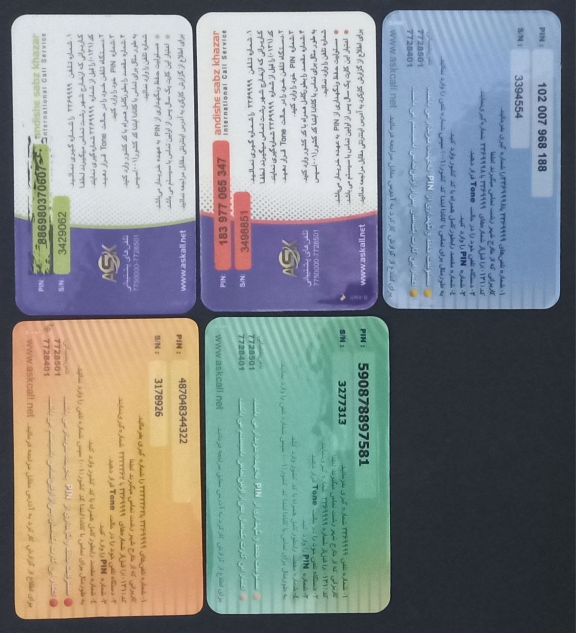 پنج کارت تلفن اعتباری، 150,000 تومان