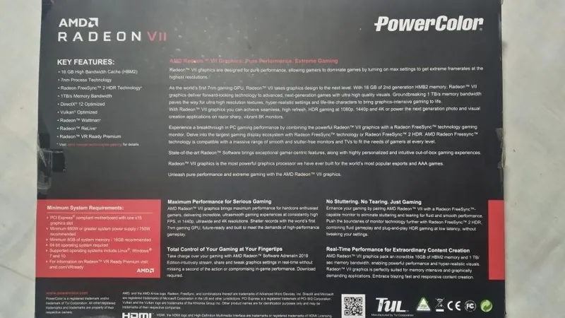 کارت گرافیک Radeon VII امروز دارای شرایط مناسبی برای اجرای بازی های سطح بالای 4K است و پیشرفت مطلوبی را در این زمینه داشته است. کارت گرافیک Radeon VII یک گزینه مناسب برای GeForce RTX 2080 محسوب می شود، اگرچه در صورت بازی در سطح وضوح 1080 و1440 GeForce RTX 2080 به طور کلی دارای عملکرد بهتری است. این کارت با پردازش گرافیکی 7 نانومتری و مبتنی بر پردازنده گرافیکی Vega 20، در نسخه Vega 20 XT ، DirectX 12 را مورد پشتیبانی قرار می دهد.