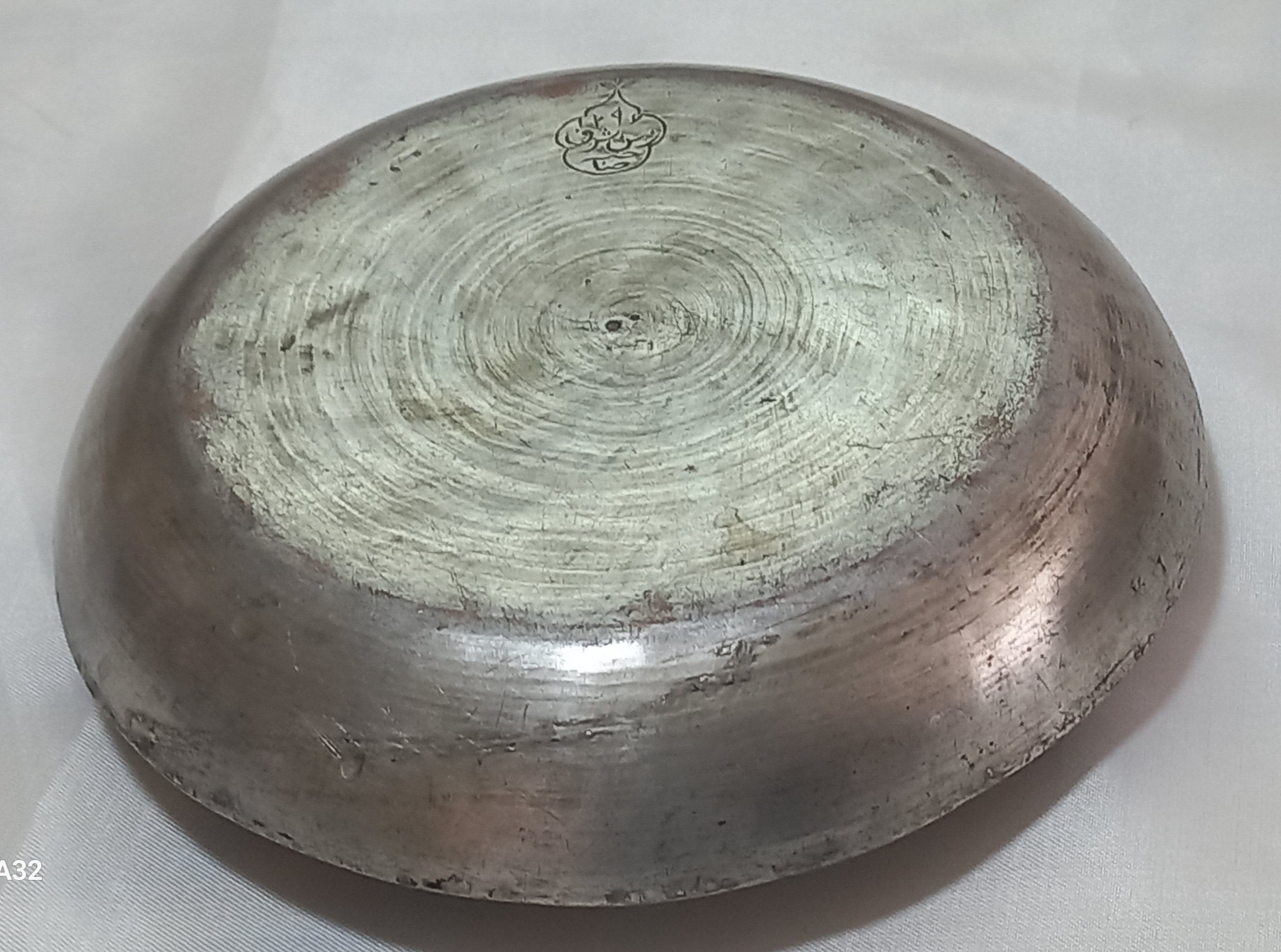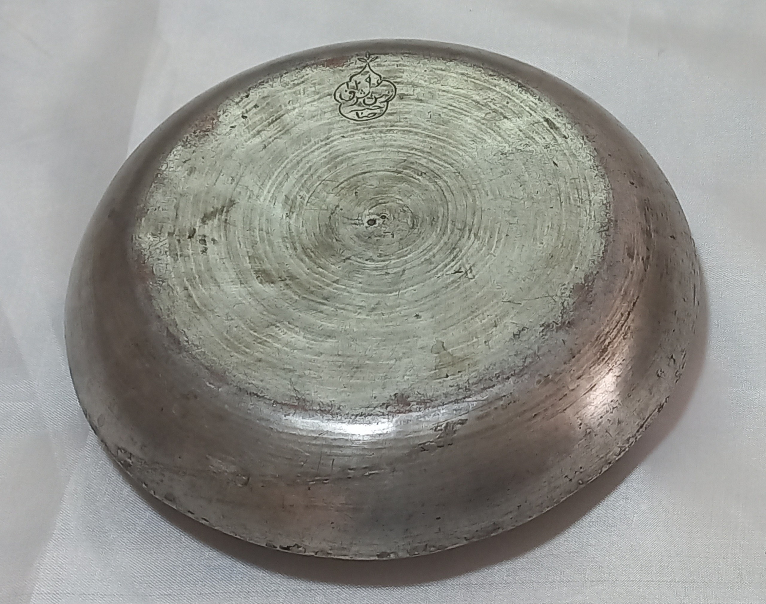 بشقاب مسی. قاجاری . صاحبه دار. بتاریخ 1296