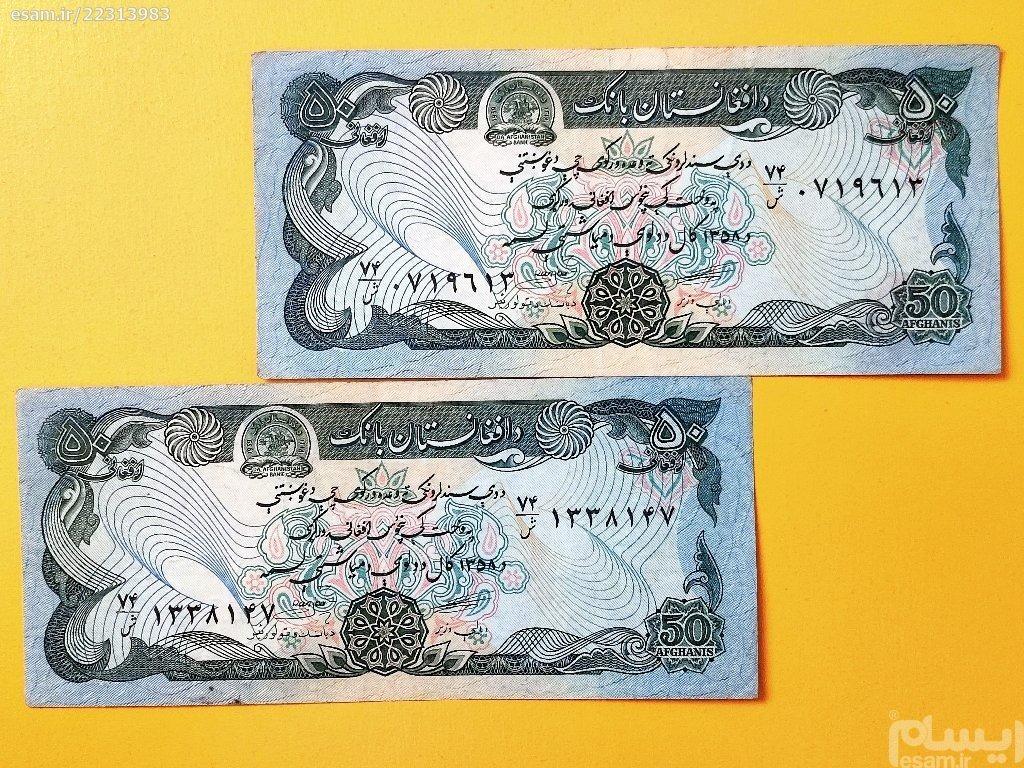 2 عدد اسکناس ارزشمند و کمیاب 50 افغانی افغانستان