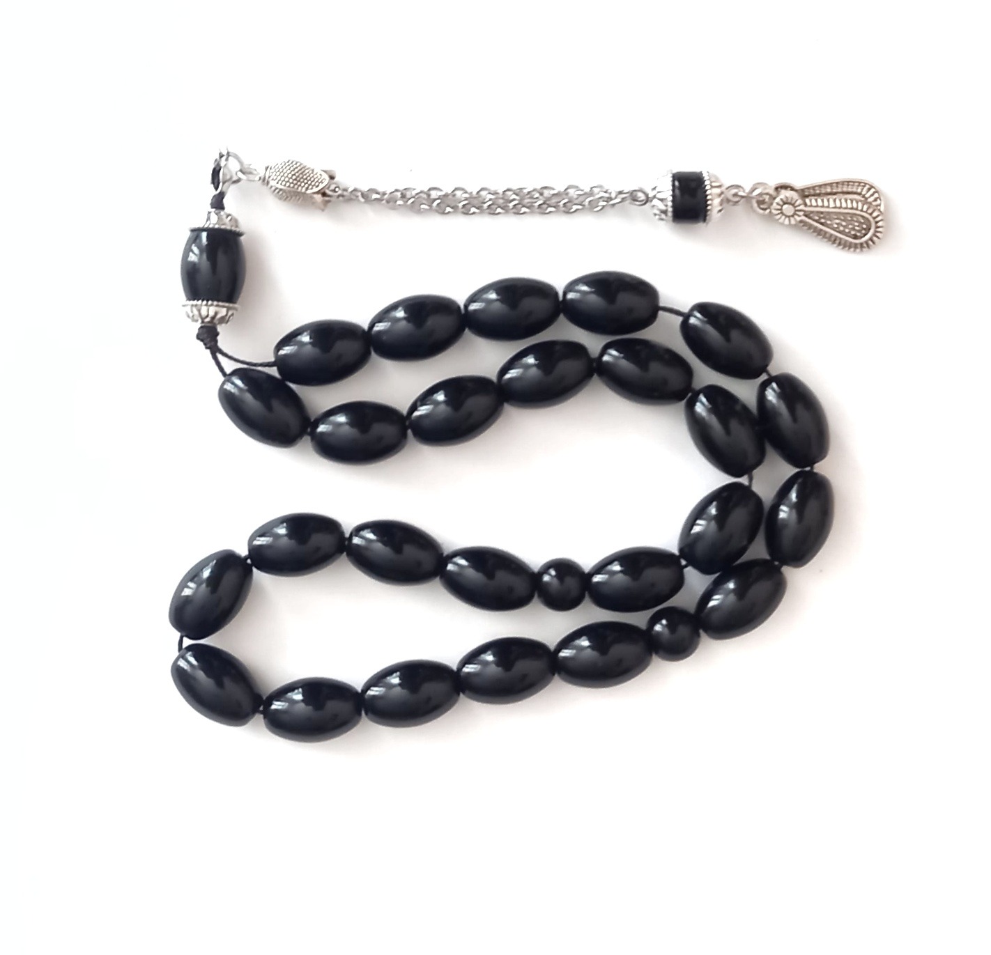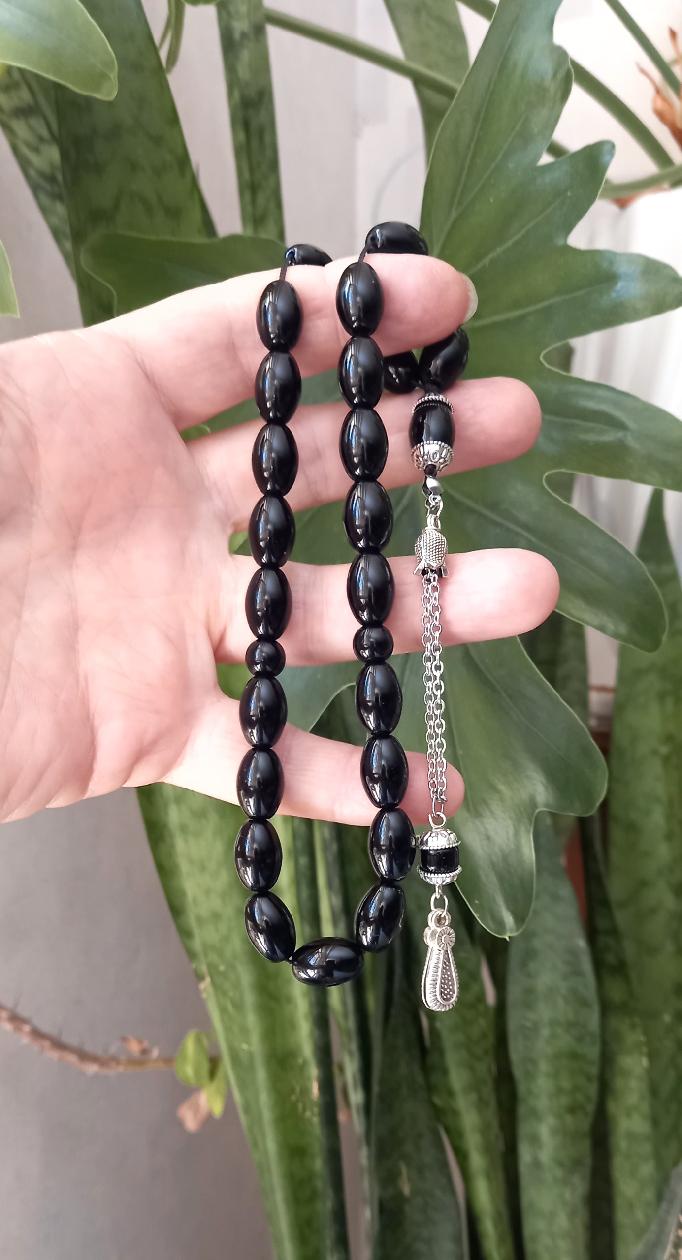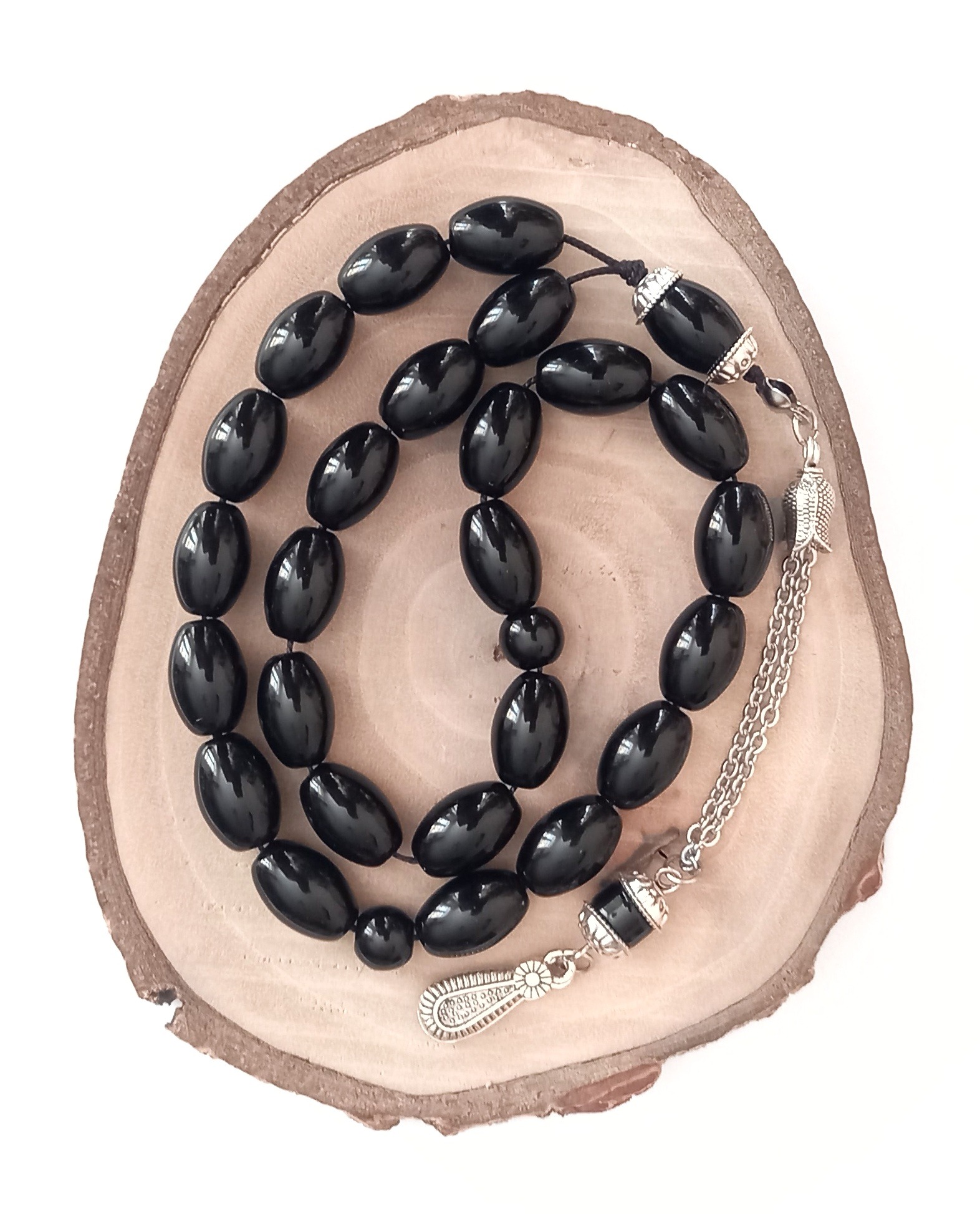 #تسبیح اونیکس هلی درشت مشکی براق 25 دانه با آویز فلزی یک تسبیح خاص و کلکسیونی با سنگ صنعتی است که حتما از داشتن آن خورسند خواهید بود . این تسبیح خاص قابل استفاده برای خانمها و آقایان بوده و بعلت خوش دست بودن یک همراه همیشگی است