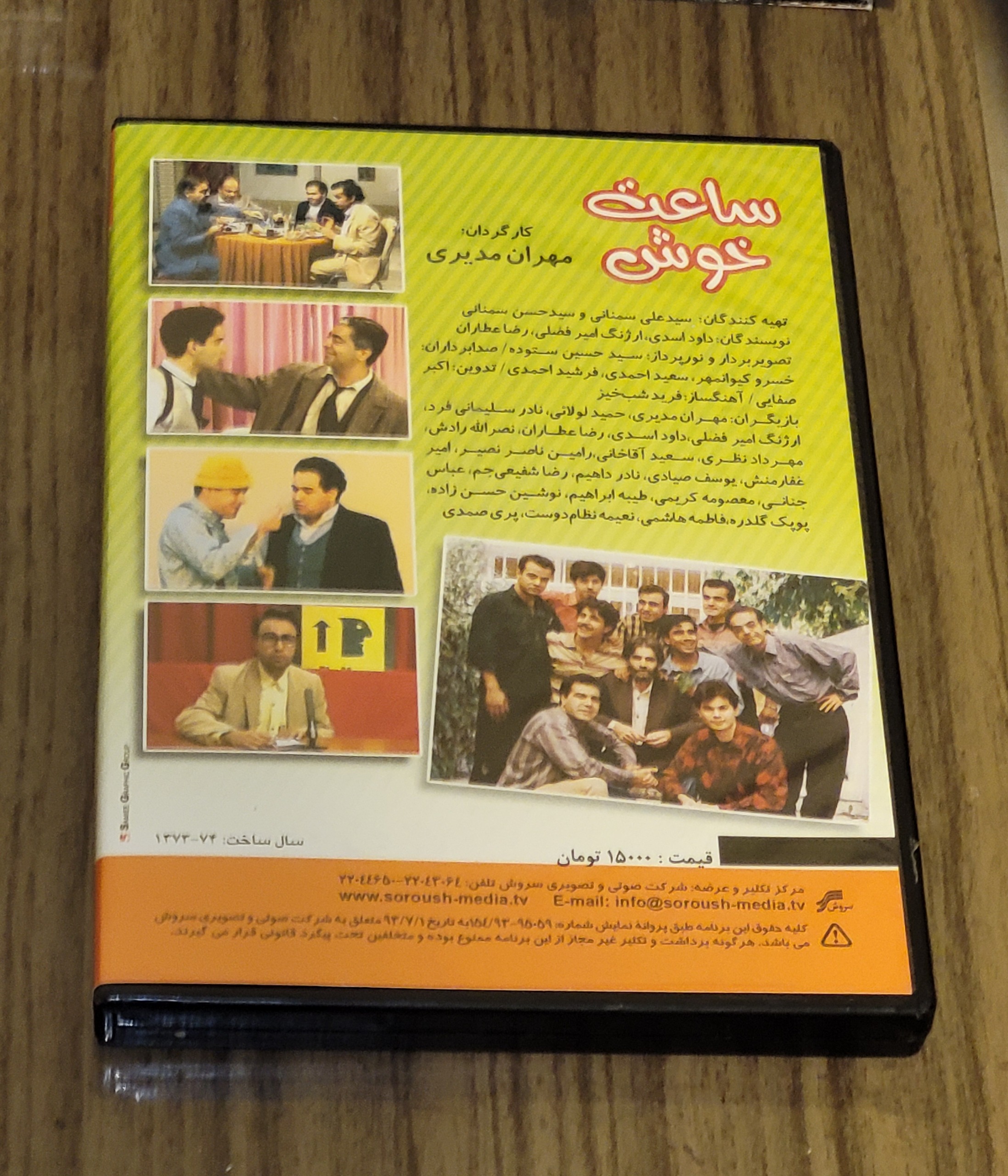 سریال ساعت خوش از آثار ساختارشکن دهه ی هفتاد بود که شکل متفاوتی از طنز را ارائه کرد و موج جدیدی از بازیگران ماهر طنز را به سینما و تلویزیون معرفی کرد. جنس طنز آیتمی انتقادی این اثر بعد از گذشت سالها، هنوز هم تماشایی است. بازیگران طنز بسیاری نظیر مهران مدیری، رضا عطاران، حمید لولایی، سعید آقاخانی، ارژنگ امیرفضلی، نادر سلیمانی و...در این اثر بازی کردند. این نسخه بسیار کمیاب و کلکسیونی است و به صورت سلفون باز شده هست اما بسیار تمیز و سالم نگهداری شده است.
