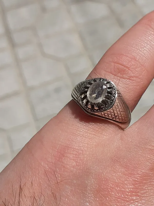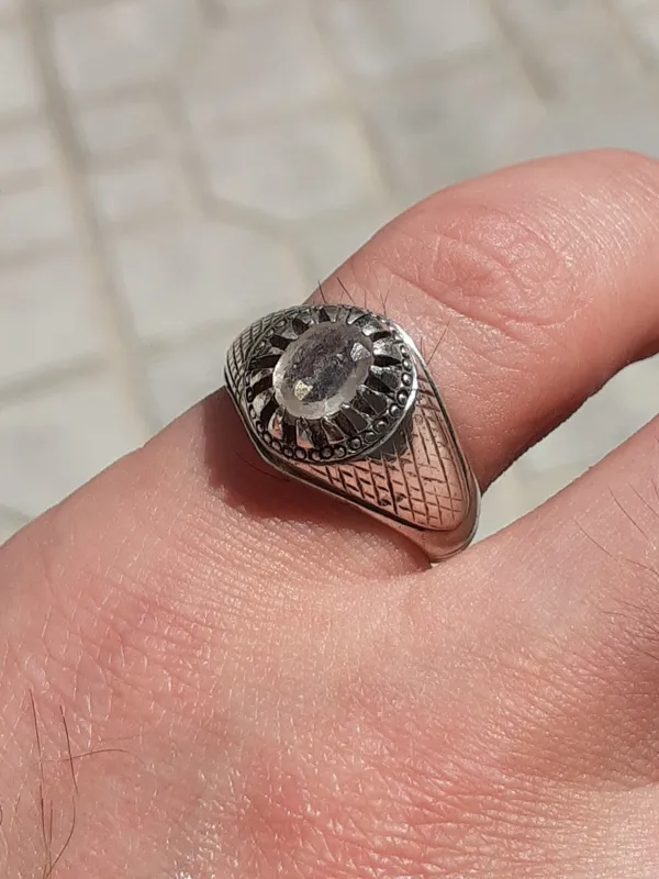 انگشترنقره کلکسیونی و کمیاب یاقوت سفید سریلانکا 100٪ معدنی پاک و شفاف کریستالی بسیار زیبا با تراش جواهری اوال و تلالو و رفلکس بالا ، با سختی 9