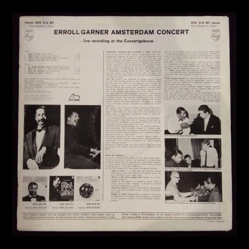 ضبط زنده بروی صفحه گرام از کنسرت ارول گارنر در آمستردام 1964