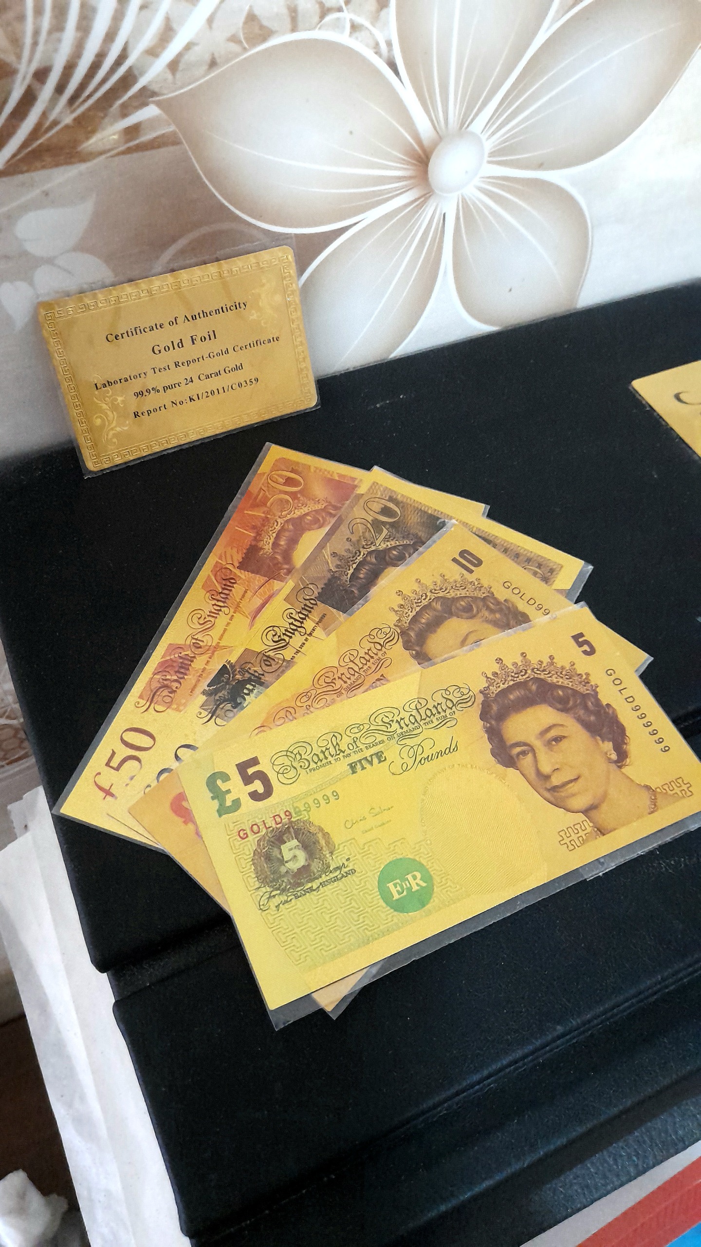 سلام.ست 4برگی اسکناس های آب طلای انگلیس،بهمراه سرتیفکیت.نوی نو.