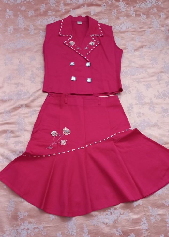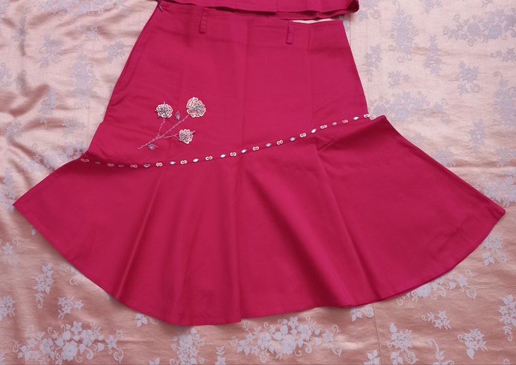اندازه های دامن: قد 55 سانت، دور کمر 74 سانت، دور باسن از 95 تا 100 سانت اندازه میشه