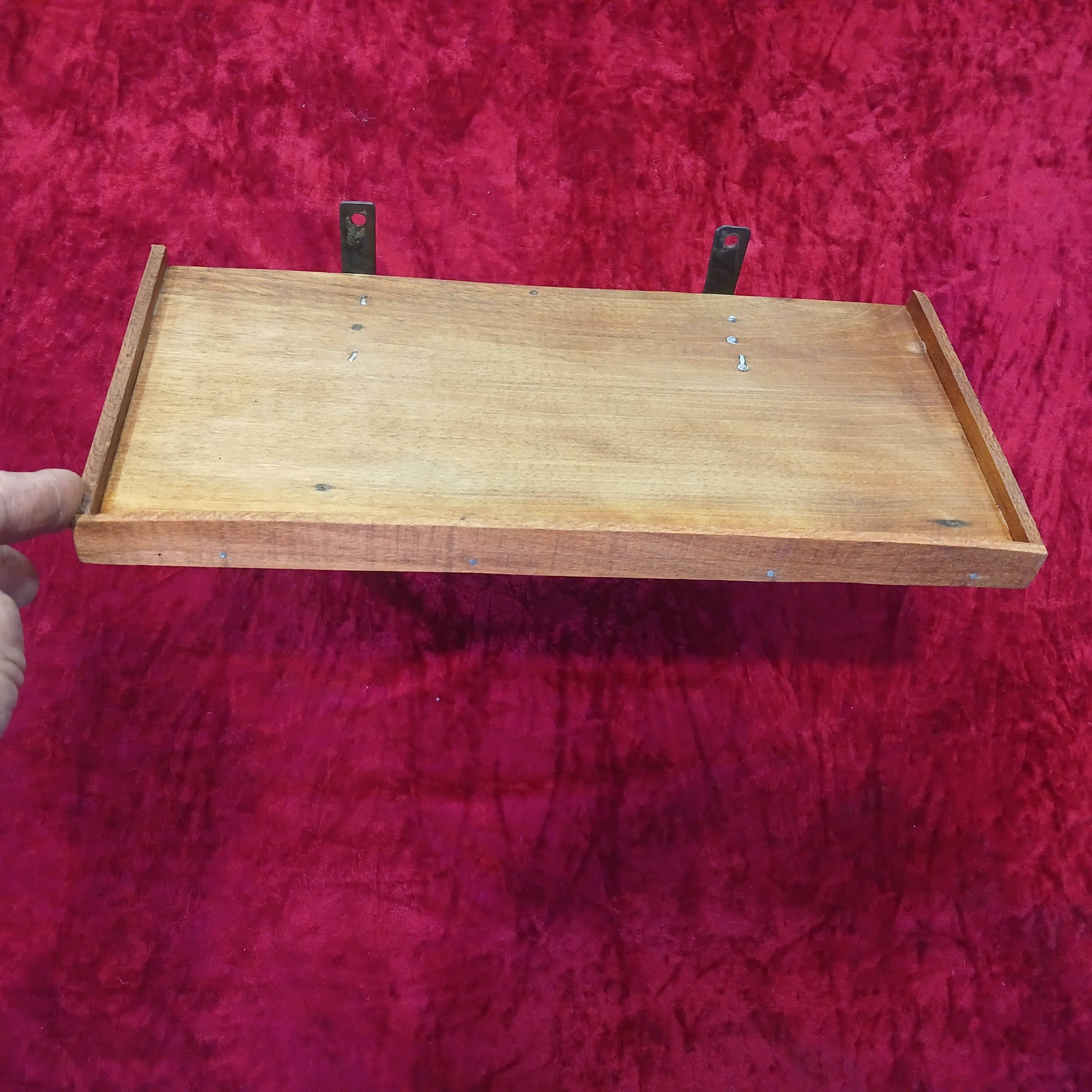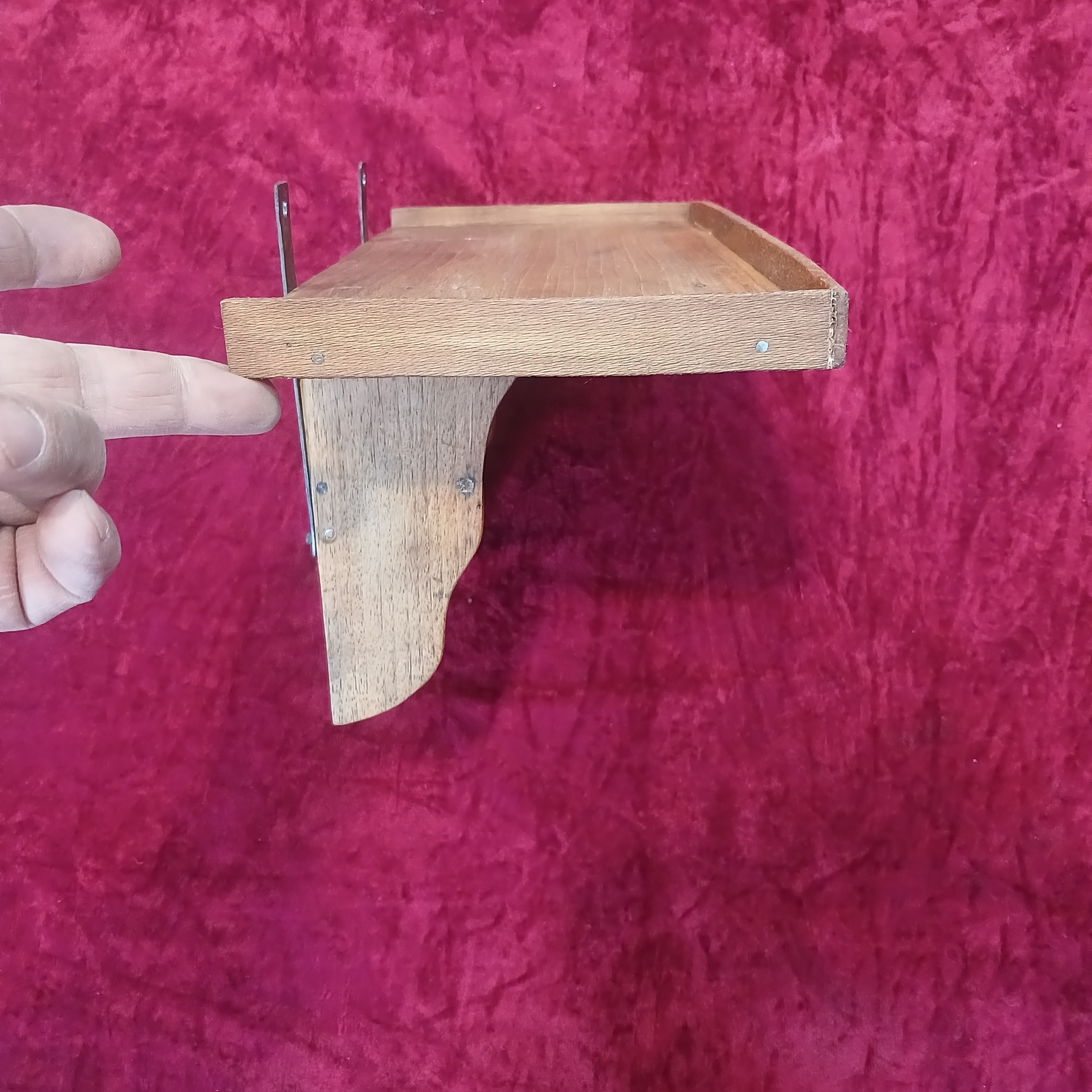 طاقچه چوبی (رفچه) سالم و بدون ایراد قابل استفاده کلکسیونی ساخته شده از چوب گردو کار نجار مراغه اندازه 33 ×16 و ارتفاع 15 سانت.