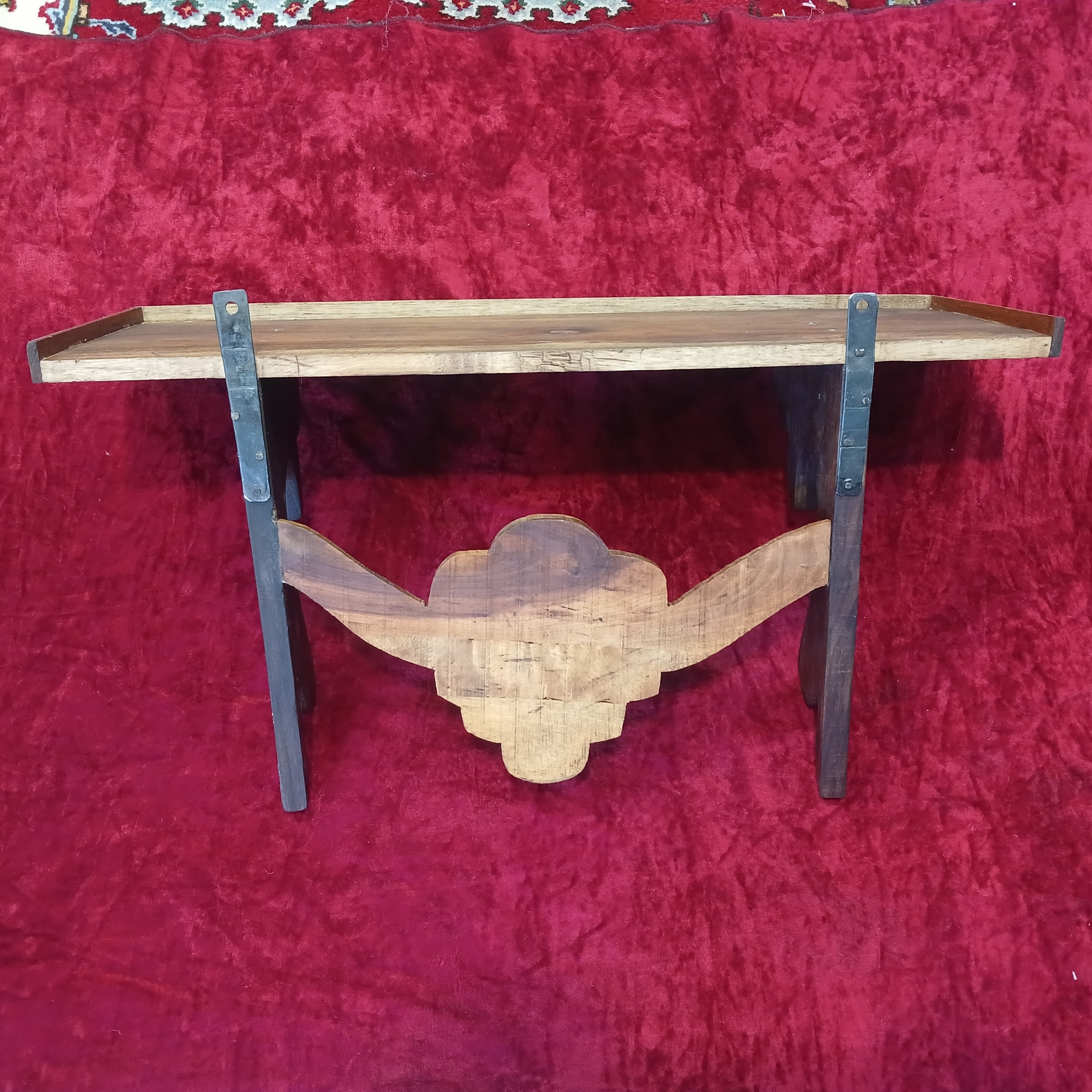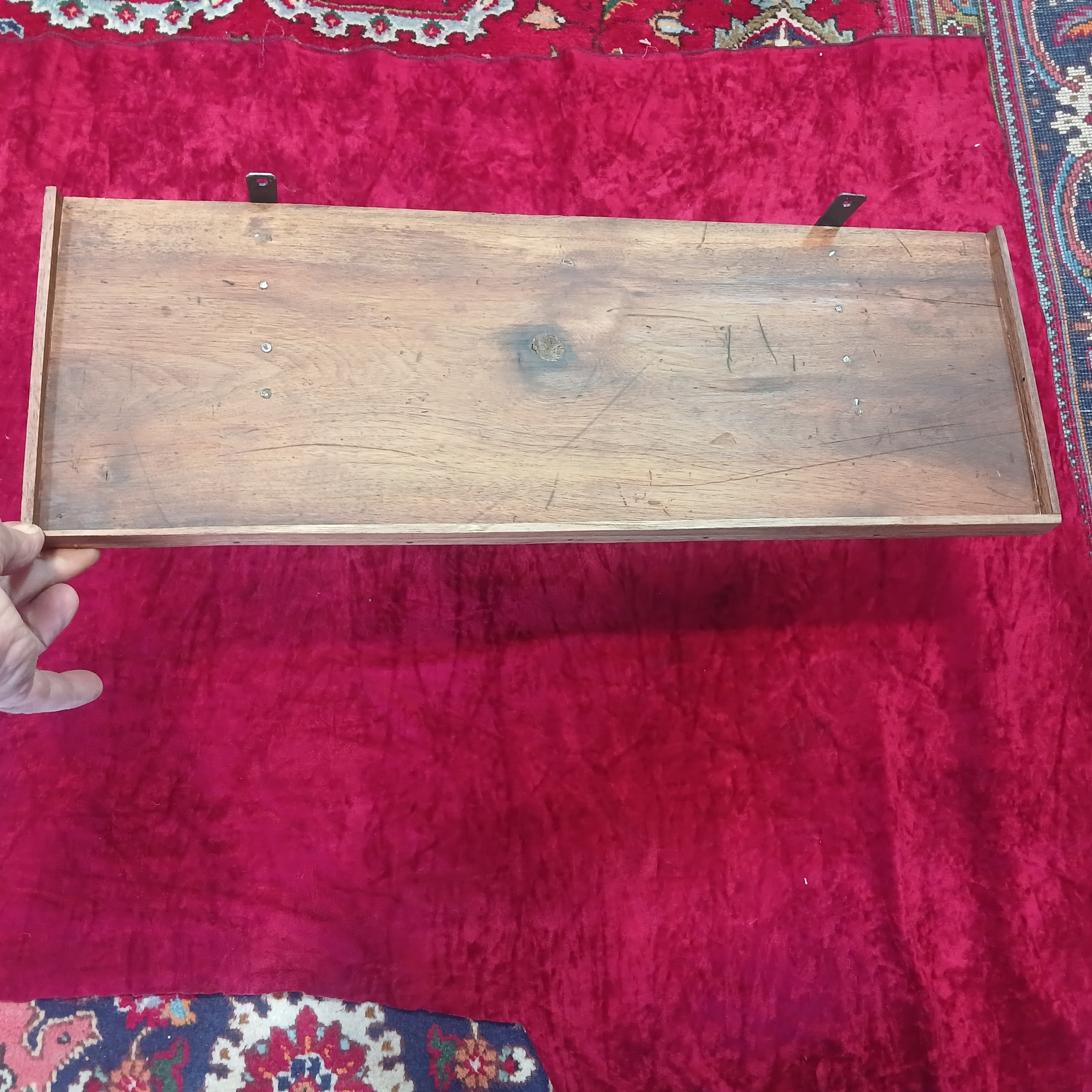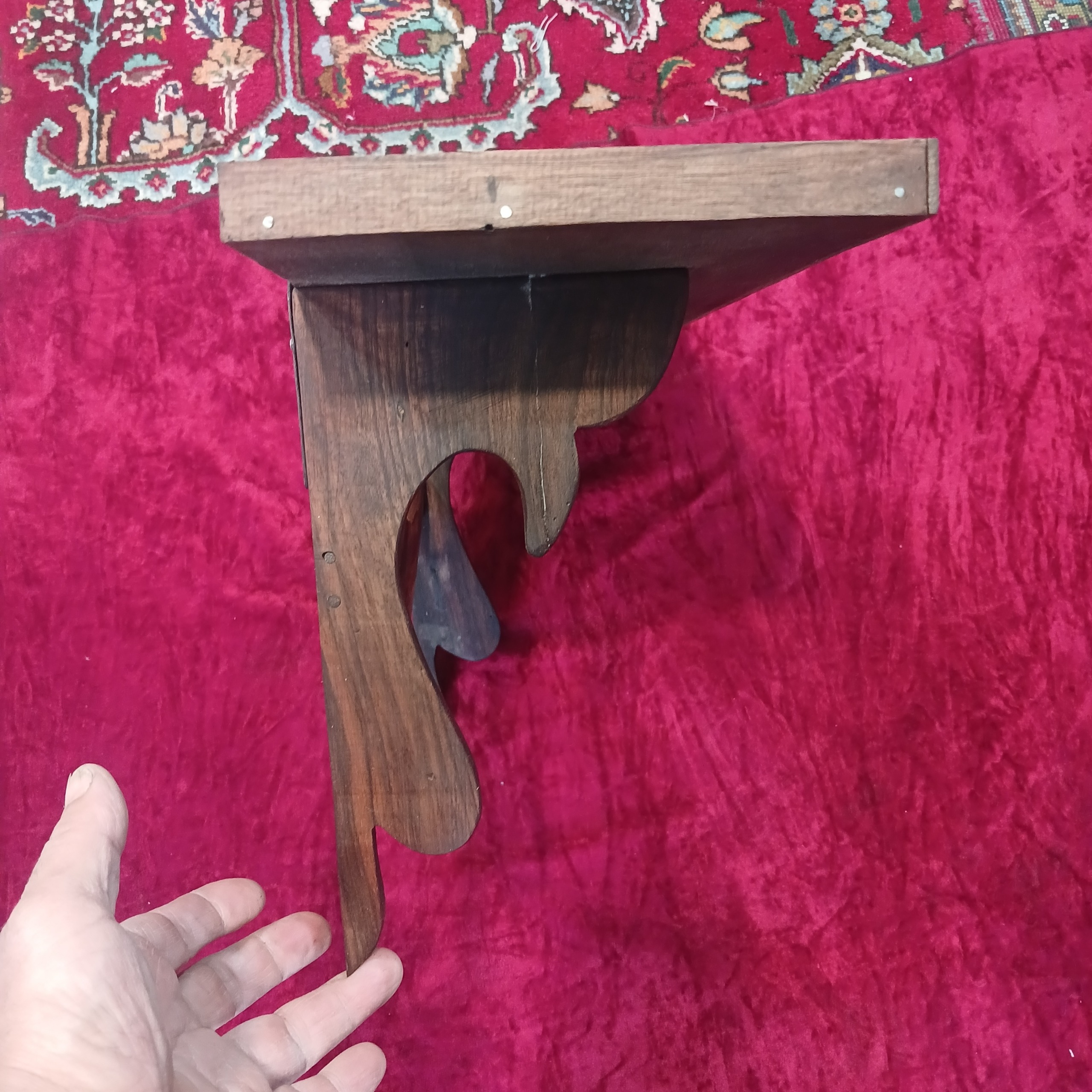 طاقچه چوبی دست سازقابل استفاده کلکسیونی ساخته شده از چوب گردو مناسب برای خانههای قدیمی و تاریخی کار نجار مراغه اندازه 51 ×18 و ارتفاع 25 سانت، یه طاقچه پرکار و مرتب و منظم و تمیز.