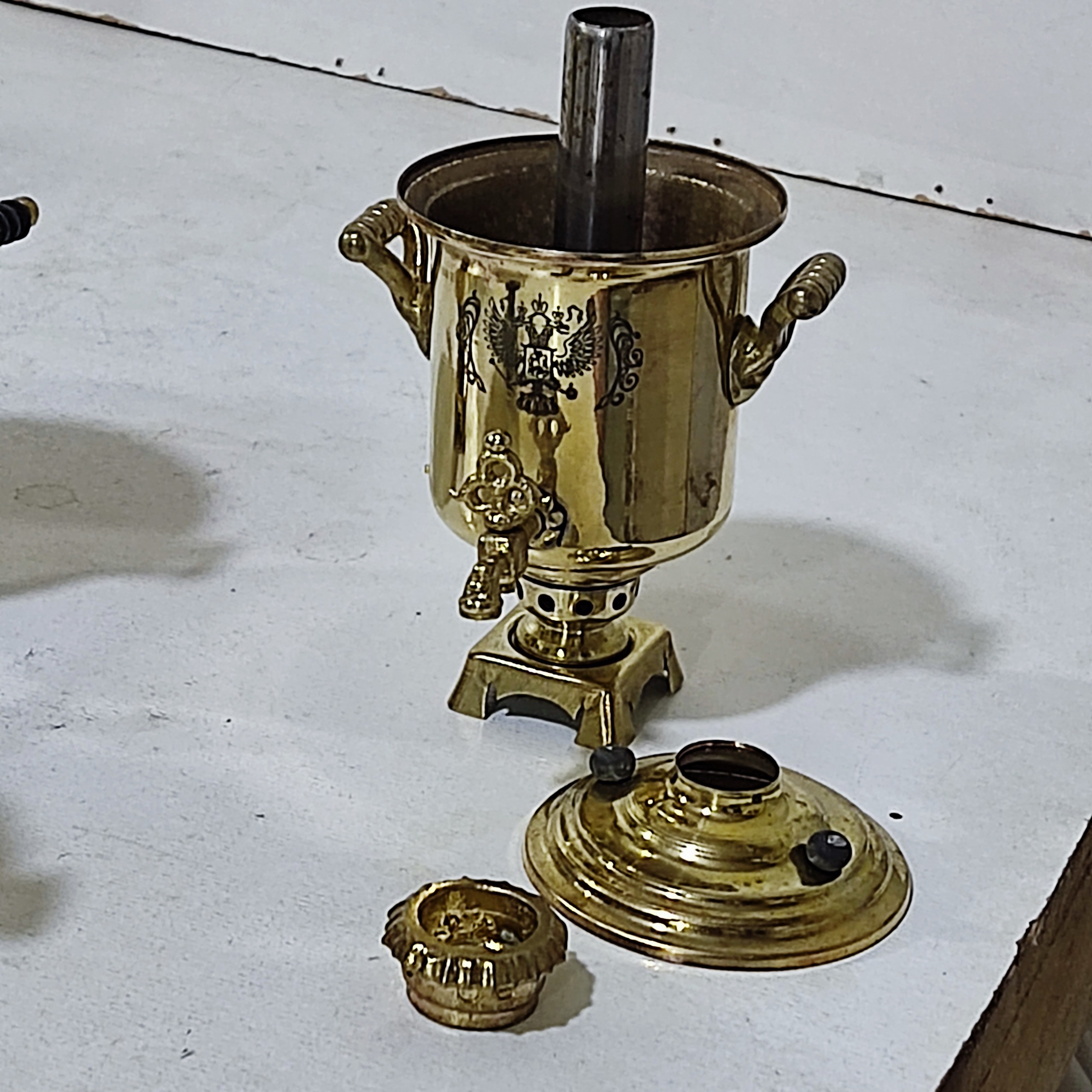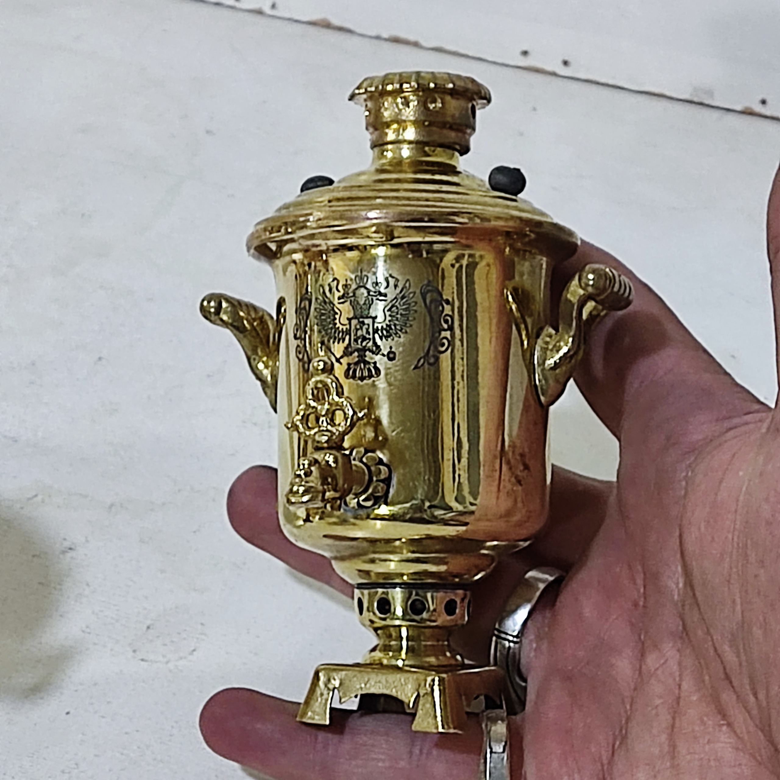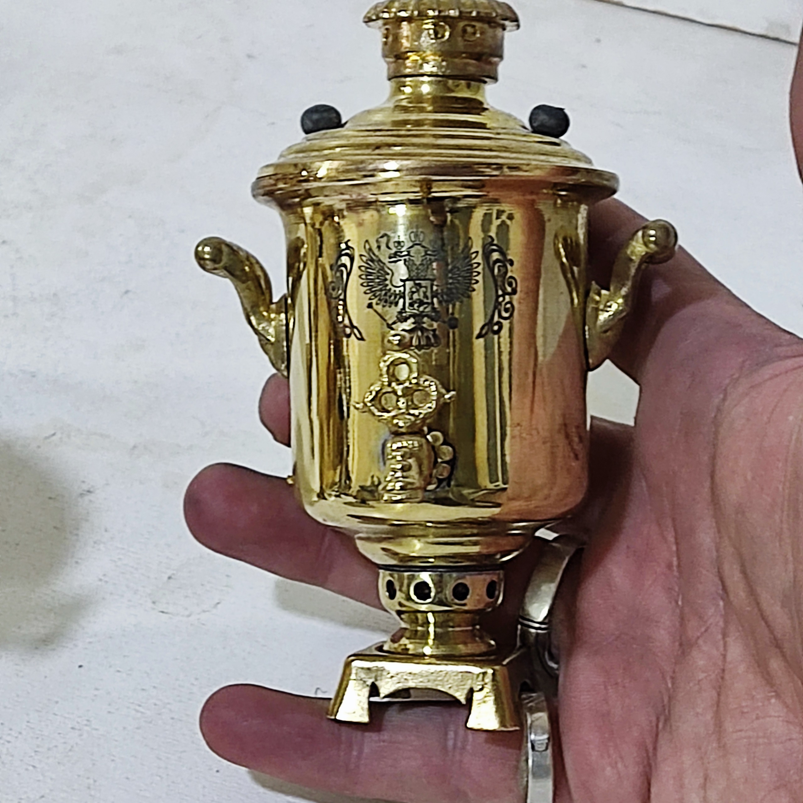 سماور برنجی مینیاتوری مارک دار طرح روس سماور کوچک