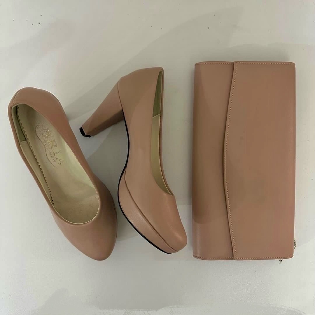 کفش و کیف صورتی کالباسی، سایز 37، کیف دارای بند زنجیری بلند هم هست