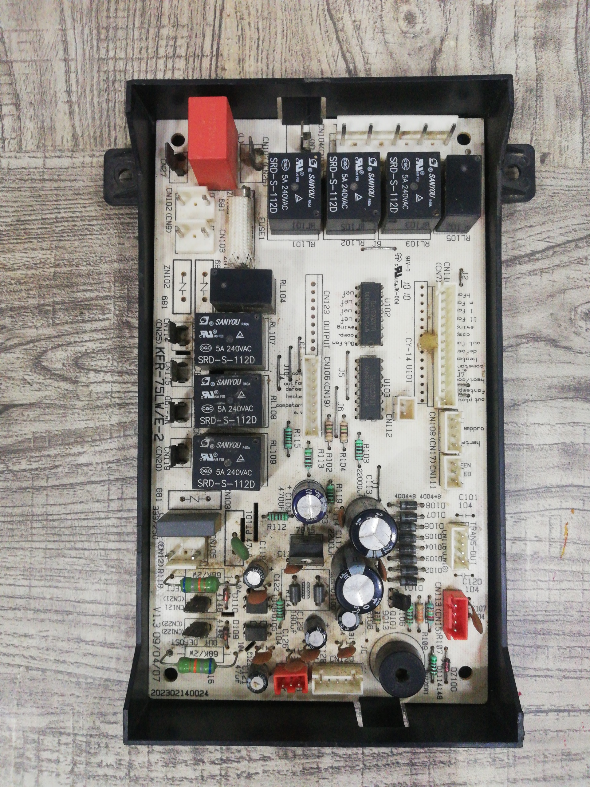 این برد مربوط به پنل داخلی کولر میباشد و سایر قطعات الکترونیکی از جمله برد کنترل، سنسورهای محیطی و سنسور انتی فریز و استپر موتور بادگردان و موتور فن پنل داخلی سیم های رابط مدار فرمان بین دو یونیت داخلی و بیرونی به آن متصل می شوند