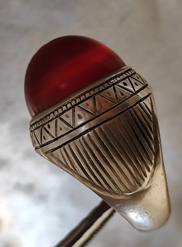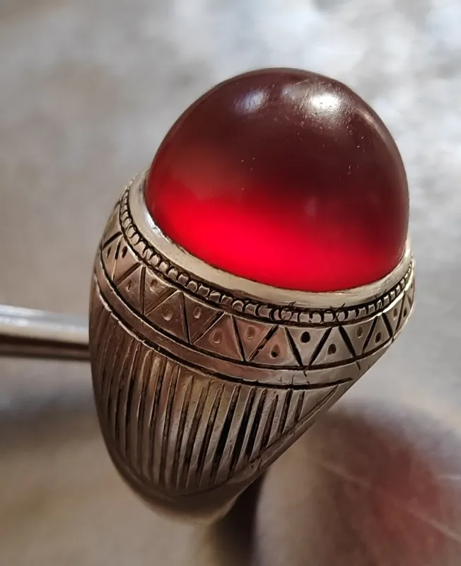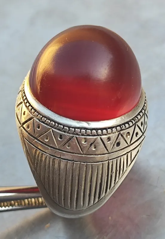 انگشتر قدیمی عقیق یمن سیاه سرخ طوق دار
