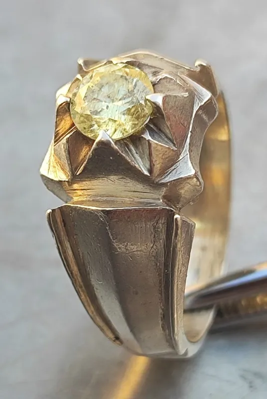 انگشتر برلیان طبیعی نگین بالای یک قیراط با رکاب دست ساز مهردار