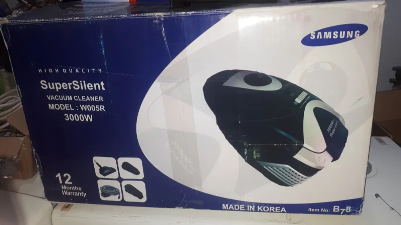 جارو برقی سامسونگ سوپر سایلنت 3000 وات ساخت کره روی کارتن نوشته طبق عکس که گزاشتم کاملا نو داخل کارتن