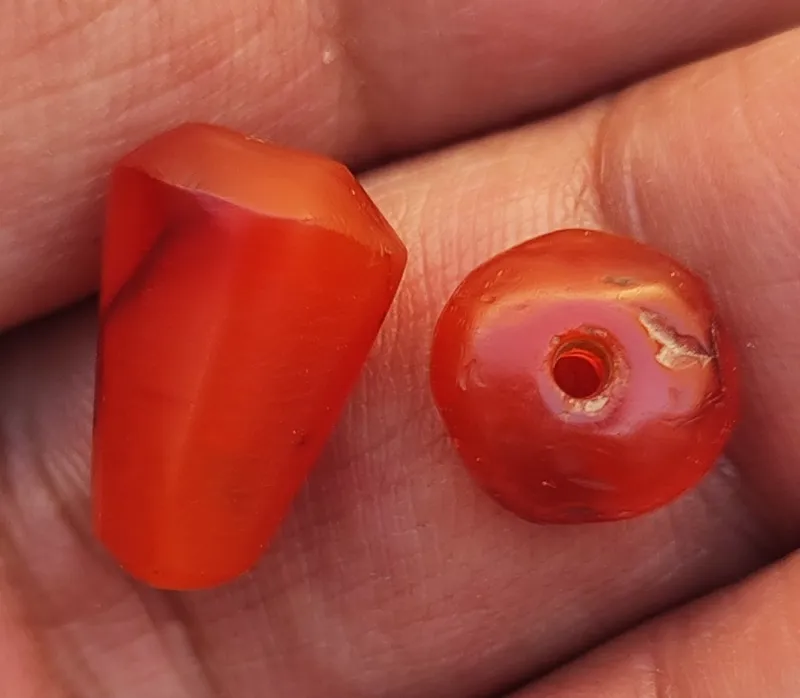 جفت مهره عقیق سرخ تراش دار بسیار قدیمی و کهنه
