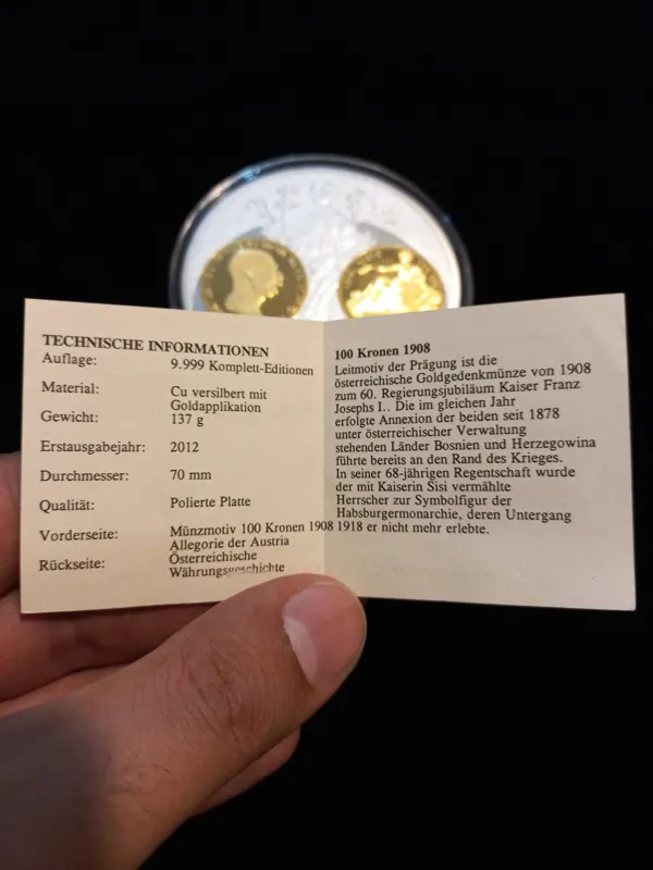 مدال یادبود سایز بزرگ 100 کرون 1908 اتریش