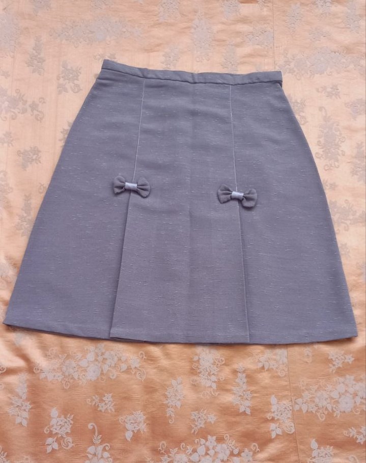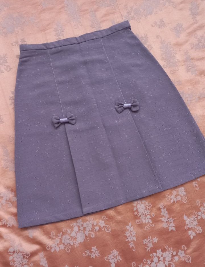 دامن رو خیاط دوخته دو تا پیله دار که روی هر کدام یک پاپیون ناز داره