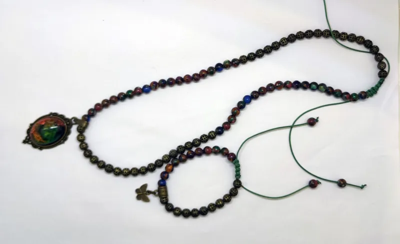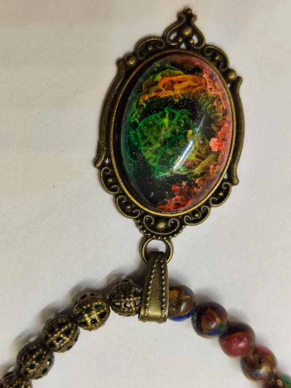 نیم ست بهشتی به زیبایی بهشت , ترکیب سنگ جاسپر سرخپوستی و رنگ و رزین گردنبند و دستبند کلاسیک مدرن مخصوص آنهایی که خاص هستند.