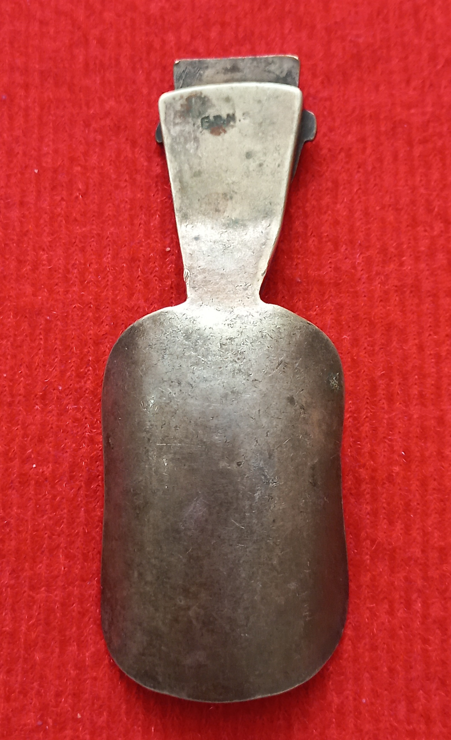 آیتم 10 - 591 _ قاشق / پیمانه برنجی آنتیک و قدیمی انگلیسی ، سنگین ، محکم ، مارکدار ، خاص و متفاوت .