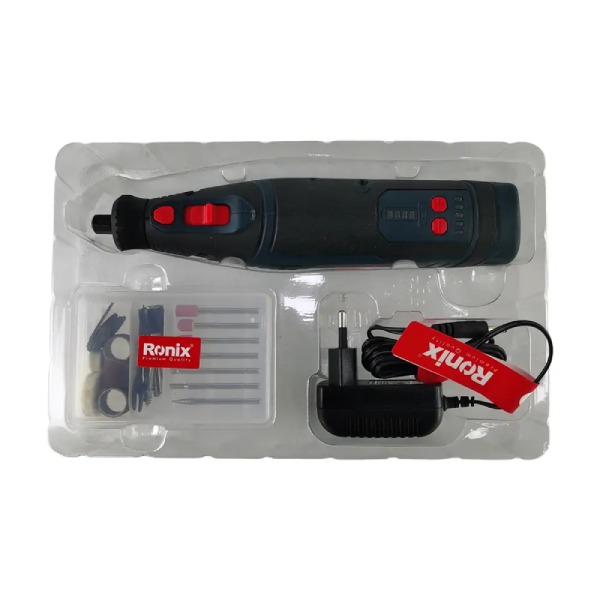 فرز مینیاتوری شارژی 3421 رونیکس مجهز به یک موتور DC 8 ولت است که سرعتی بالغ بر 30000 دور در دقیقه را تولید کرده و به ابزارگیر 3.2 میلیمتری خود منتقل میکند؛ سرعتی که در 5 حالت مختلف، در بازه 5000 تا 30000 دور در دقیقه و متناسب با سطح کار شما قابل تنظیم است.