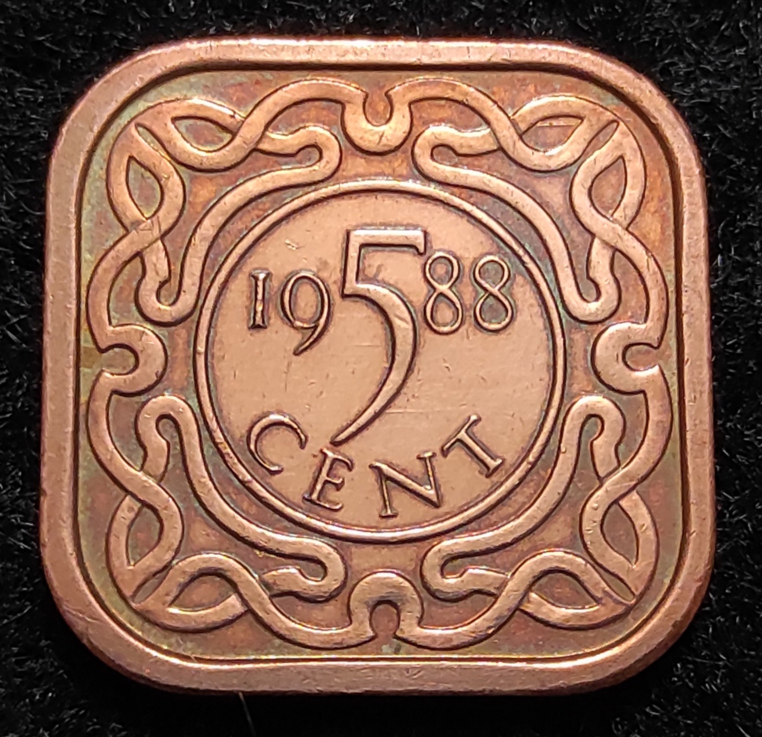 سکه مربعی کمیاب و خاص 5 سنت سورینام