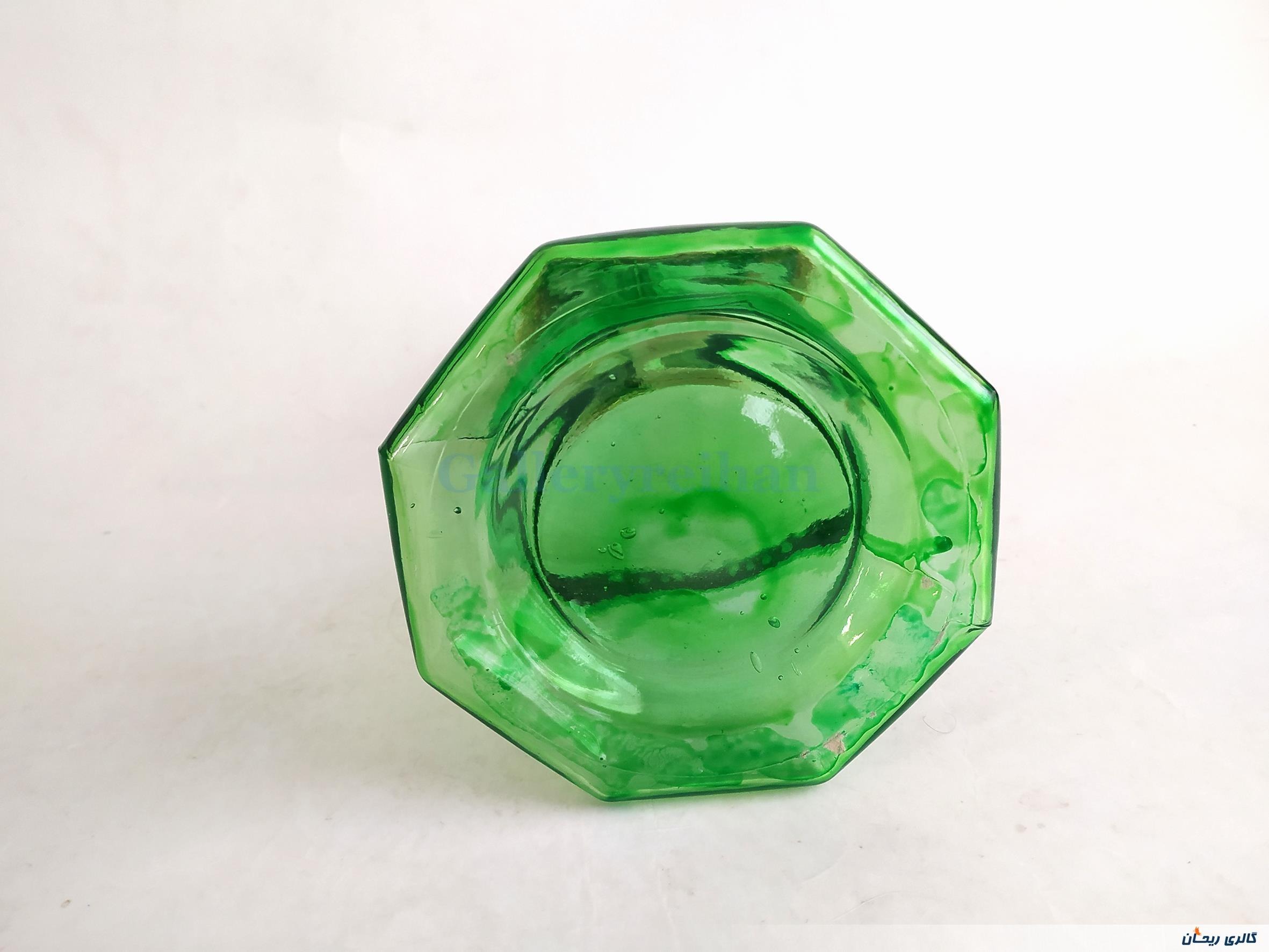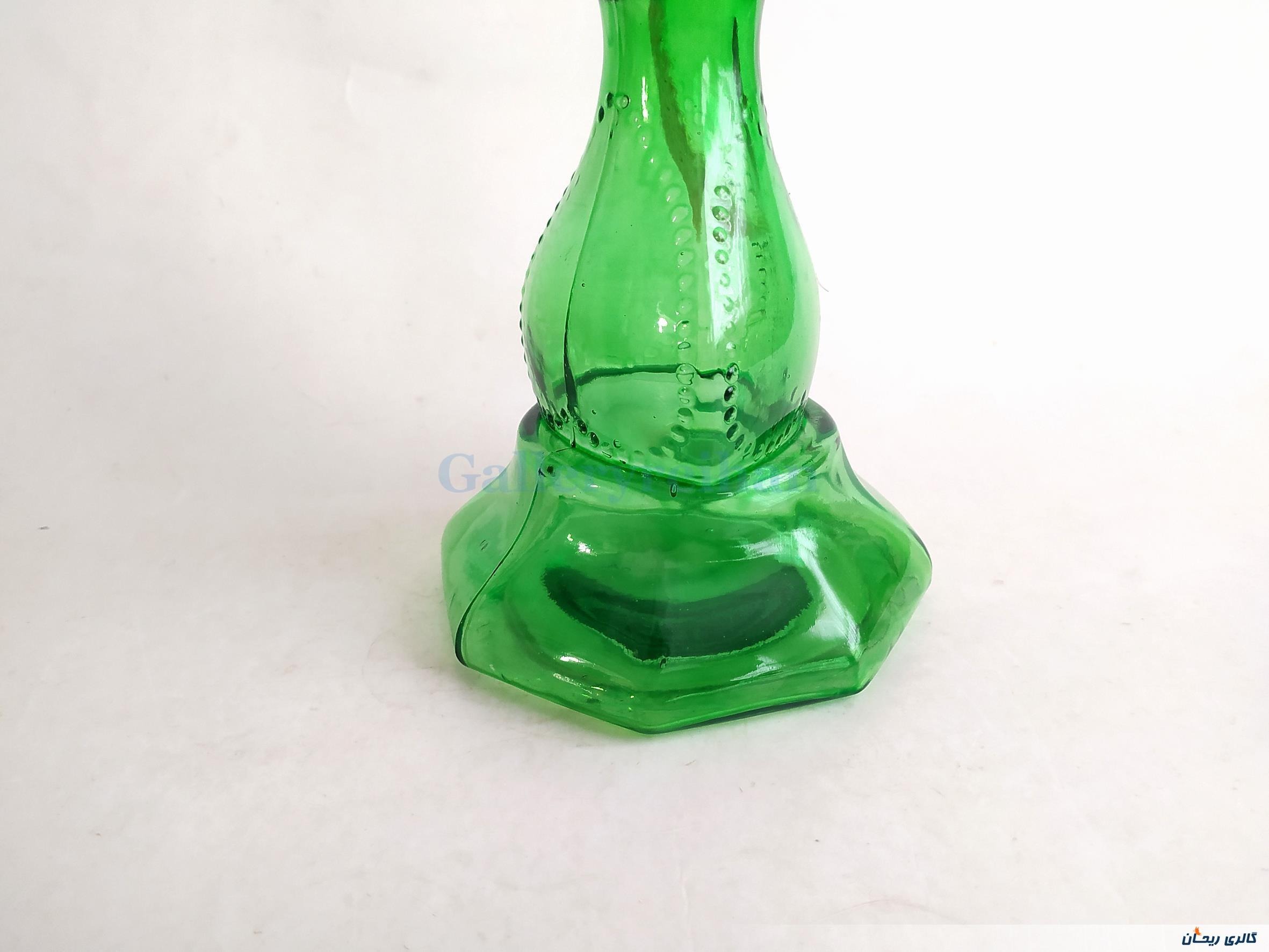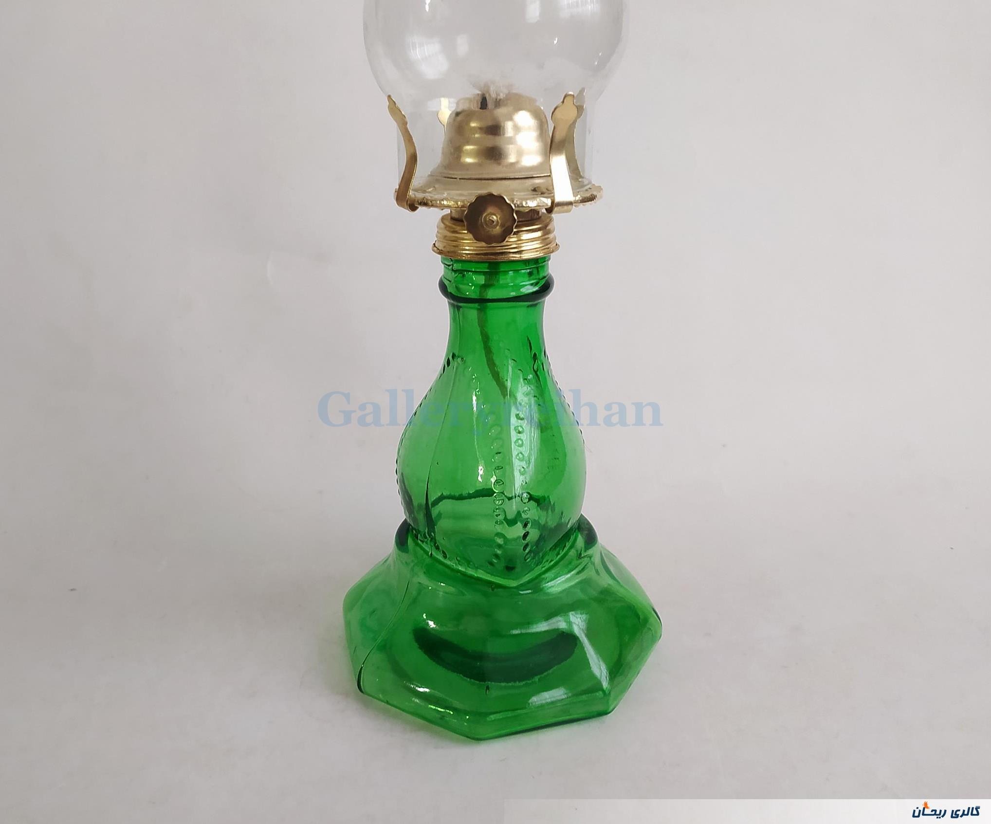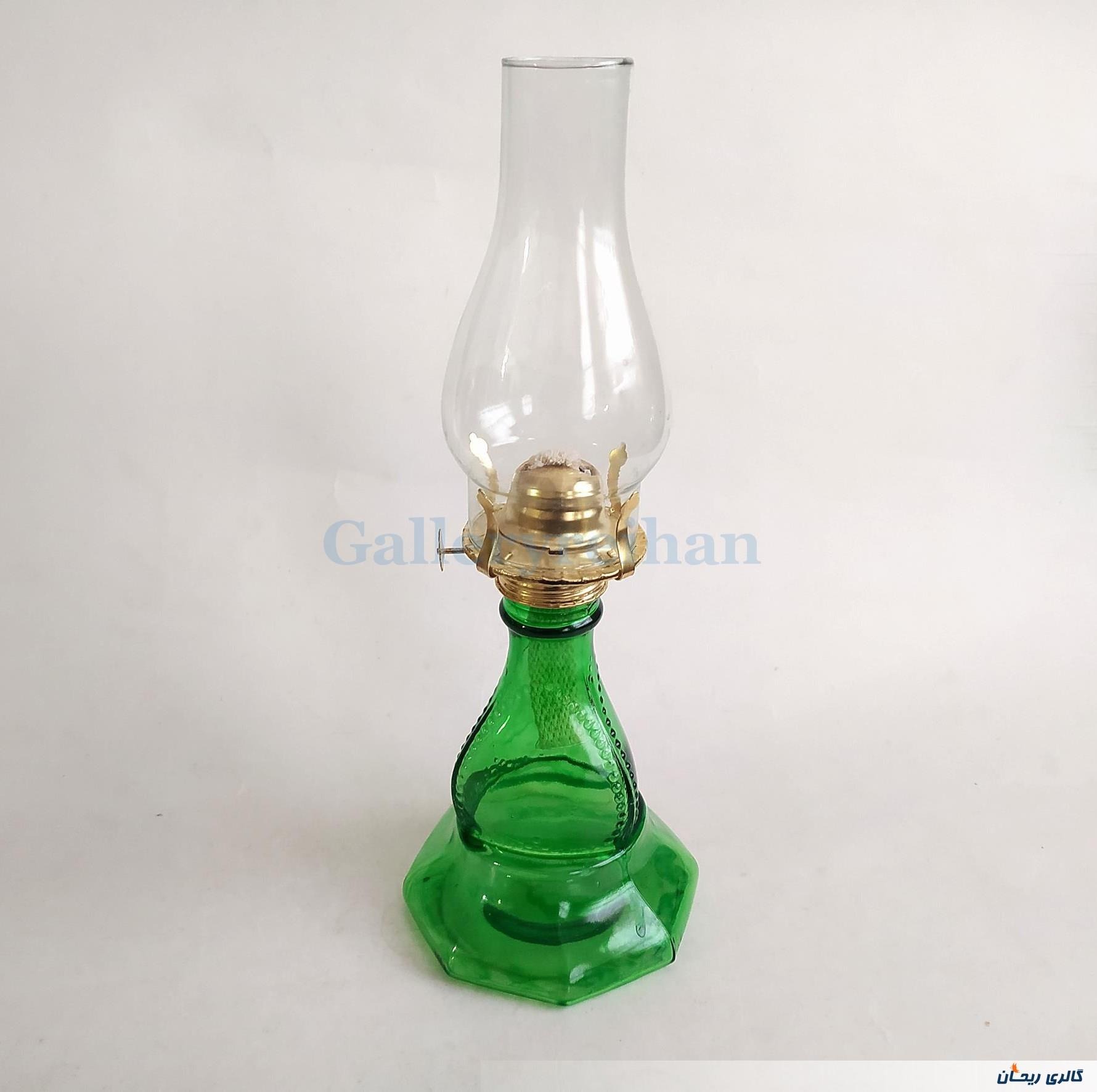 چراغ نفتی قدیمی پایه بلند رنگ شده سبز (کد47554)