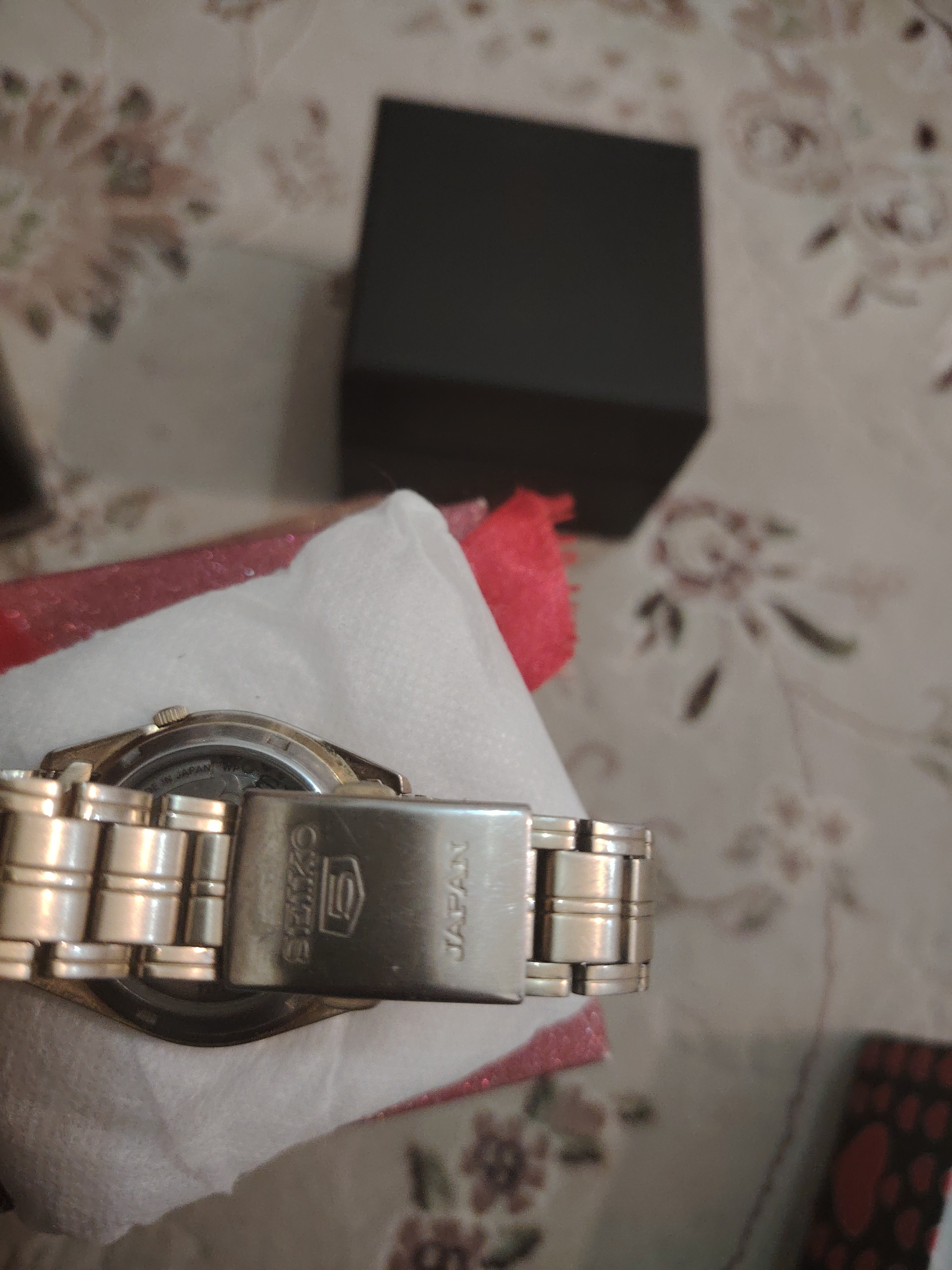 سیکو 5 اتوماتیک از مدل هایی که با بسان روی مچ و حرکت عادی دست شارژ میشود 21 جواهر پشت شیشه ای شفاف بسیار زیبا و جمع و جور قدیمی آنتیک در حد نو و استفاده نشده تقویم نشاندهنده روز هفته و عدد ماه و پیچ تنظیم پمپی که با حرکت اول تقویم و با حرکت دوم عقربه را تنظیم نموده و در حالت عادی با حالت پمپ روز هفته را هم تغییر میدهد مخصوص عاشقان ساعت های سیکو عاشقانش دانند مدل بسیار نایاب و خاصی هست