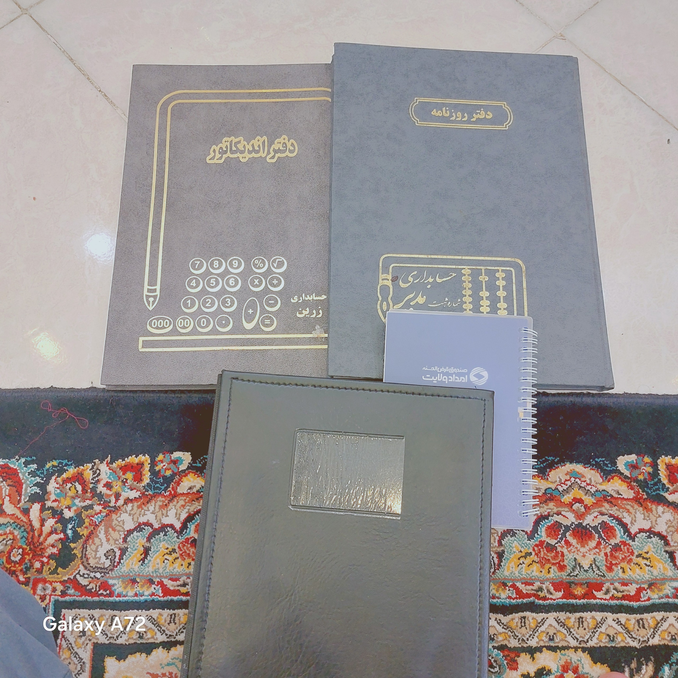 2عدد دفتر اندیکاتور بزرگ 1عدد دفتر ثبت مدارک ضد خراب شدن مدارک مهم زرد رنگ هدیه یک عدد دفتر یادداشت کوچک مقاوم فنری بهمراه چند مداد ث لوازم تحریر ارسال میشود
