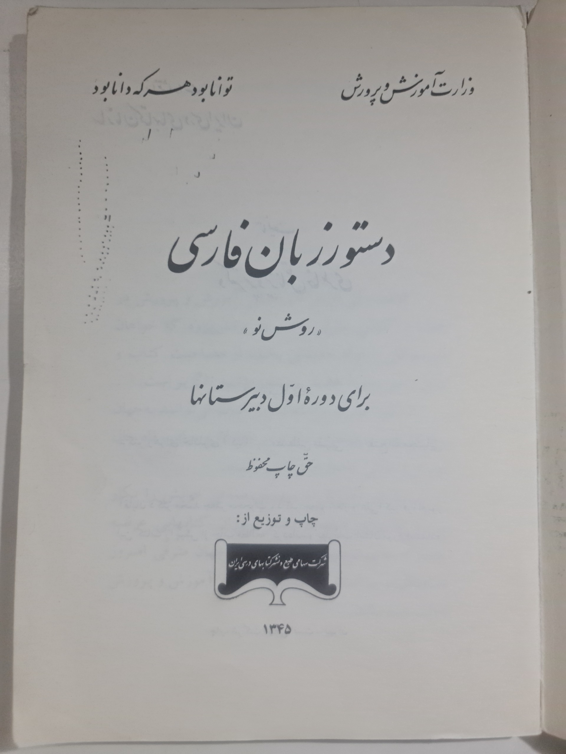 کتاب قدیمی دستور زبان فارسی سال 1345 شمسی