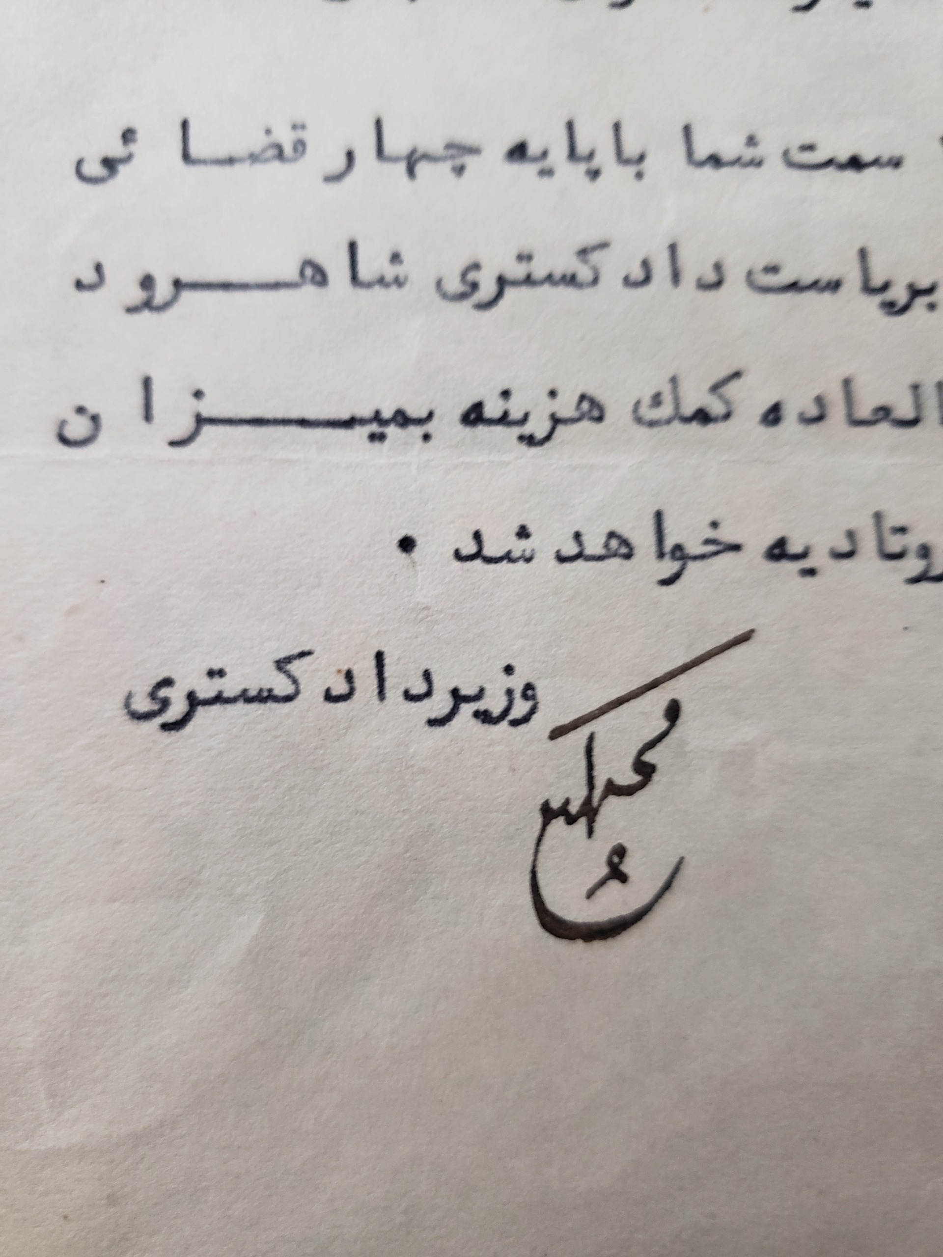 امضا مجید آهی وزیر راه و دادگستری دوره رضاشاه