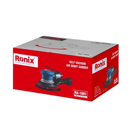 سنباده زن اوربیتال بادی رونیکس مدل RA-1601، در جعبه رنگی همراه با متعلقاتی شامل آچار، رابط بادی، لوله غبارگیر و کیسه غبارگیر به بازار ابزار ایران عرضه میشود